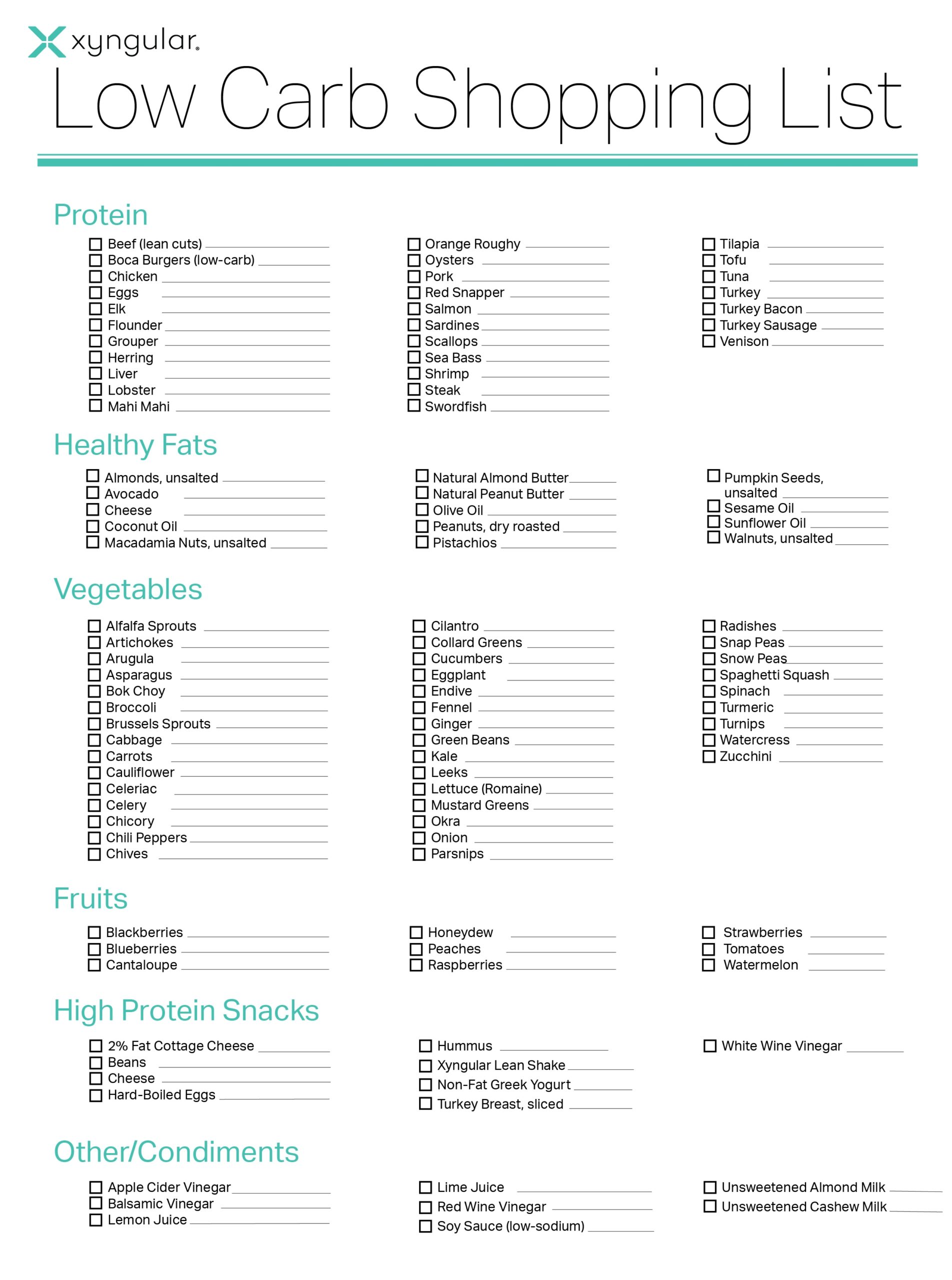 low carb shopping list printable