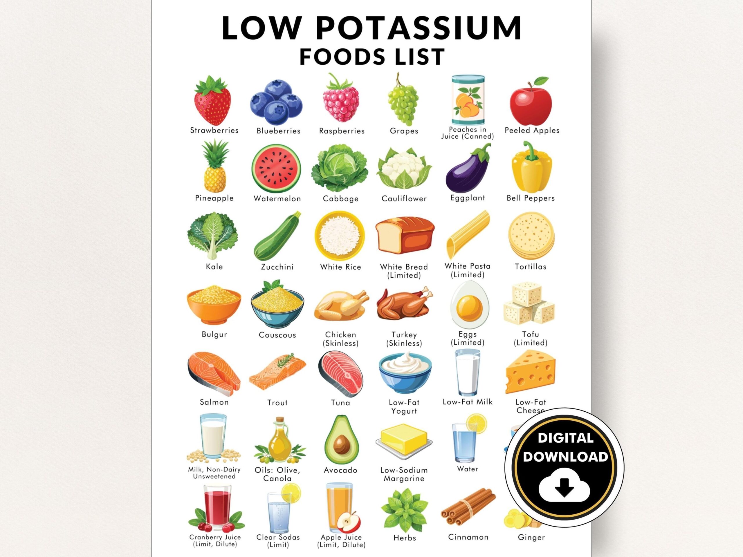 If you’re looking for a convenient way to keep track of your low-potassium food choices, consider downloading a printable low potassium food list. This handy resource can help you plan your meals, make grocery shopping easier, and stay on track with your dietary goals.