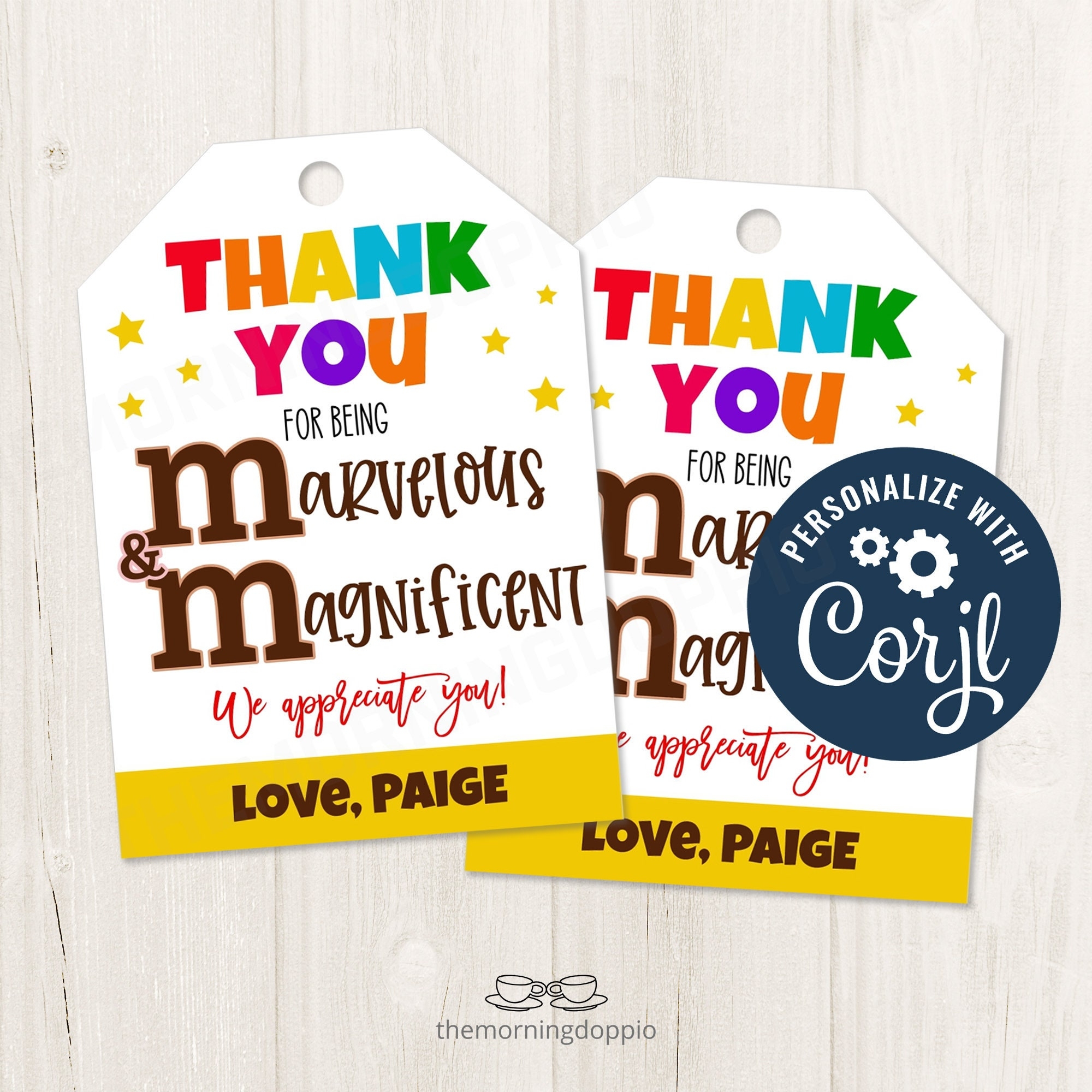 Printable editable You Are Marvelous And Magnificent Mu0026M Gift Tag For Teachers PTO Staff Admin Coworkers Teams Editable CORJL Template Etsy