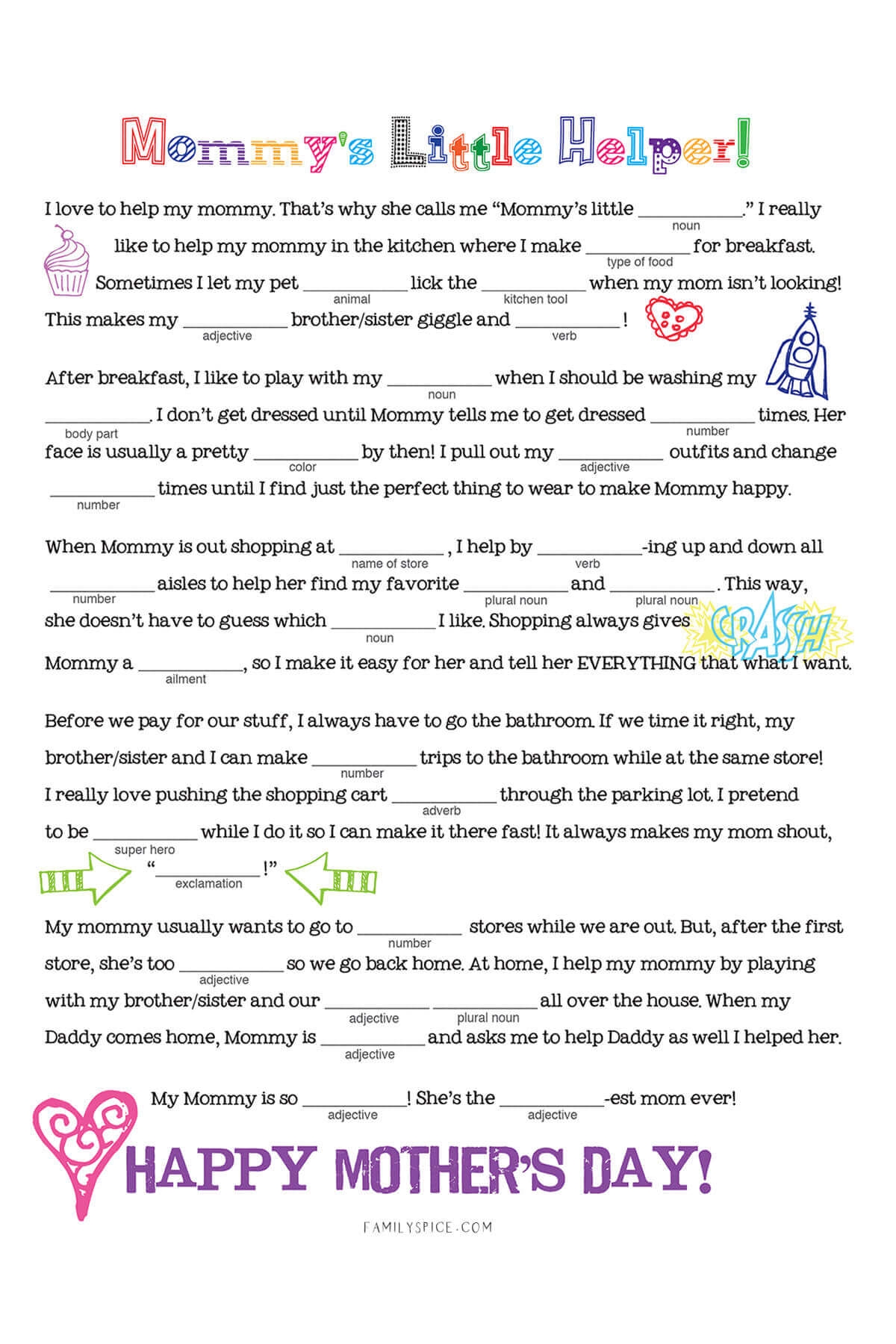 Free Mother s Day Printable Mad Libs Family Spice
