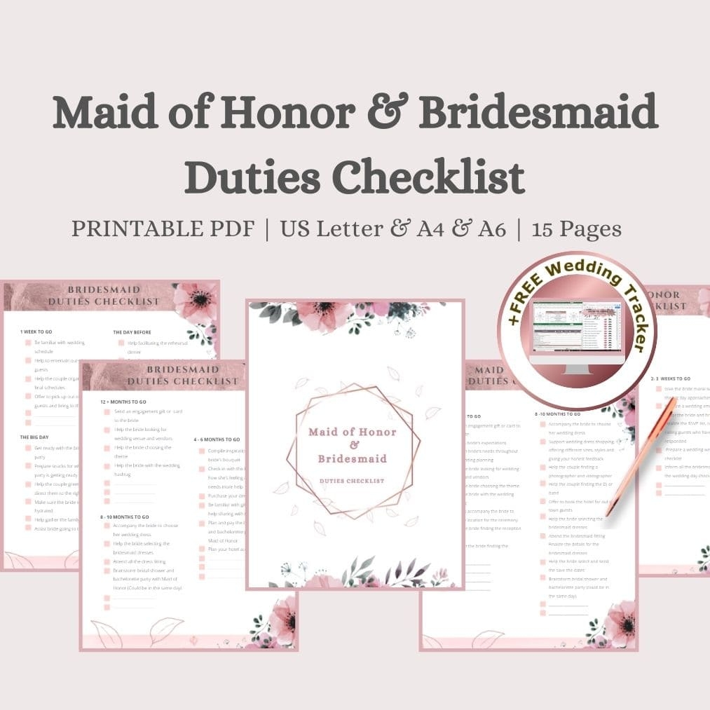 Printable Rose Gold Maid Of Honor U0026 Bridesmaid Duties Checklist Charmy Now