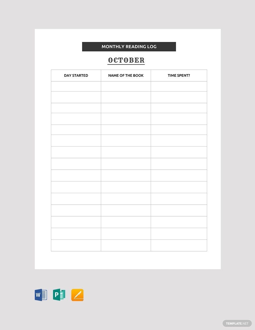 Monthly Reading Log Template In Pages Word Publisher Google