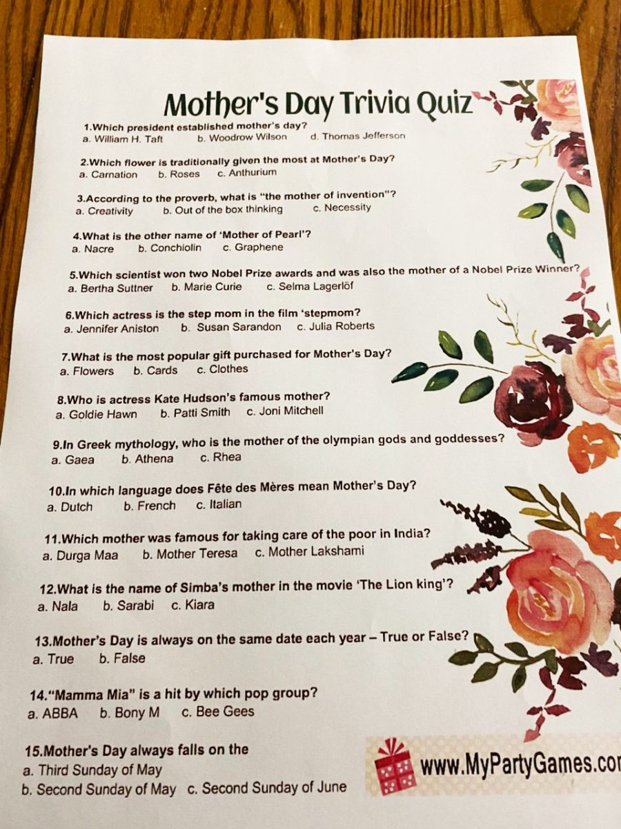 Are you looking for a fun and interactive way to celebrate Mother’s Day this year? Why not try a Mother’s Day quiz printable? It’s a great way to test your knowledge about all things mom-related while having a blast with your loved ones.