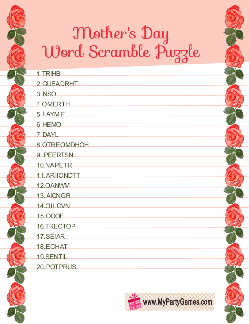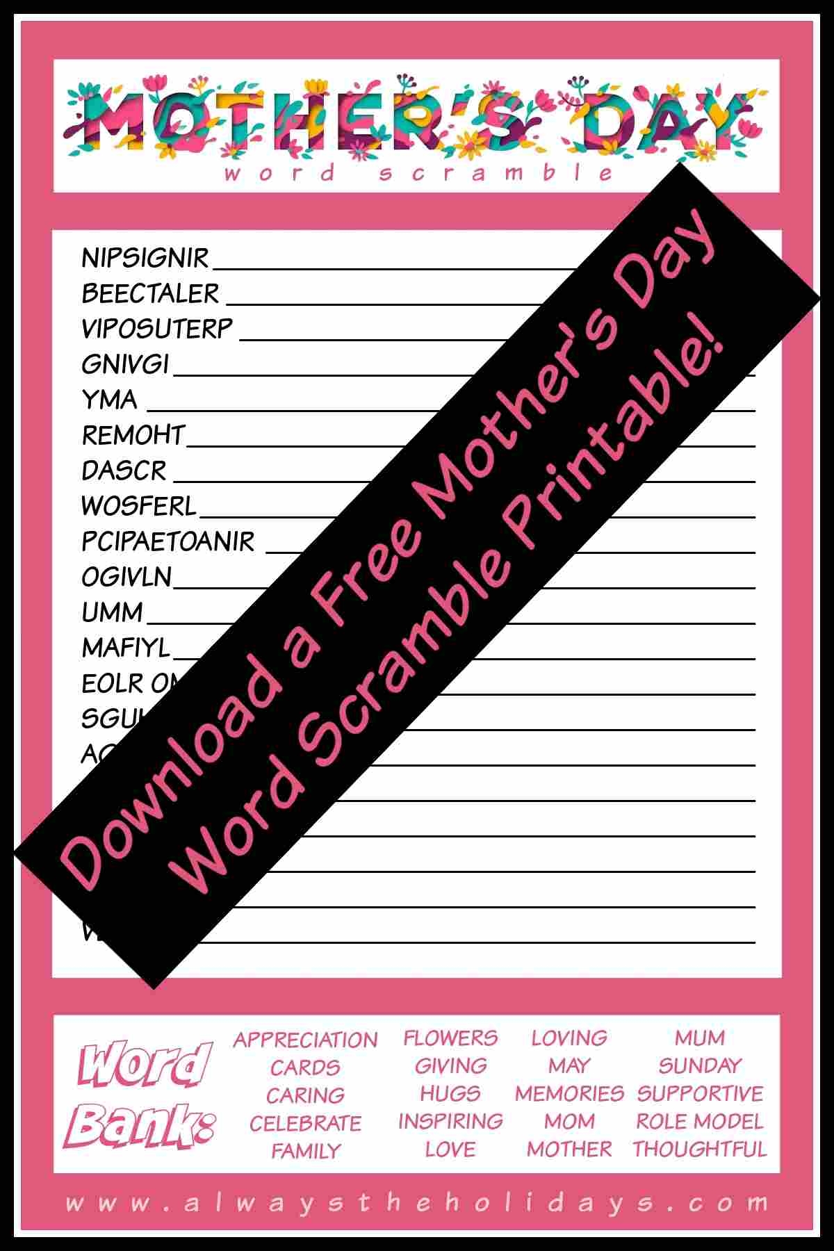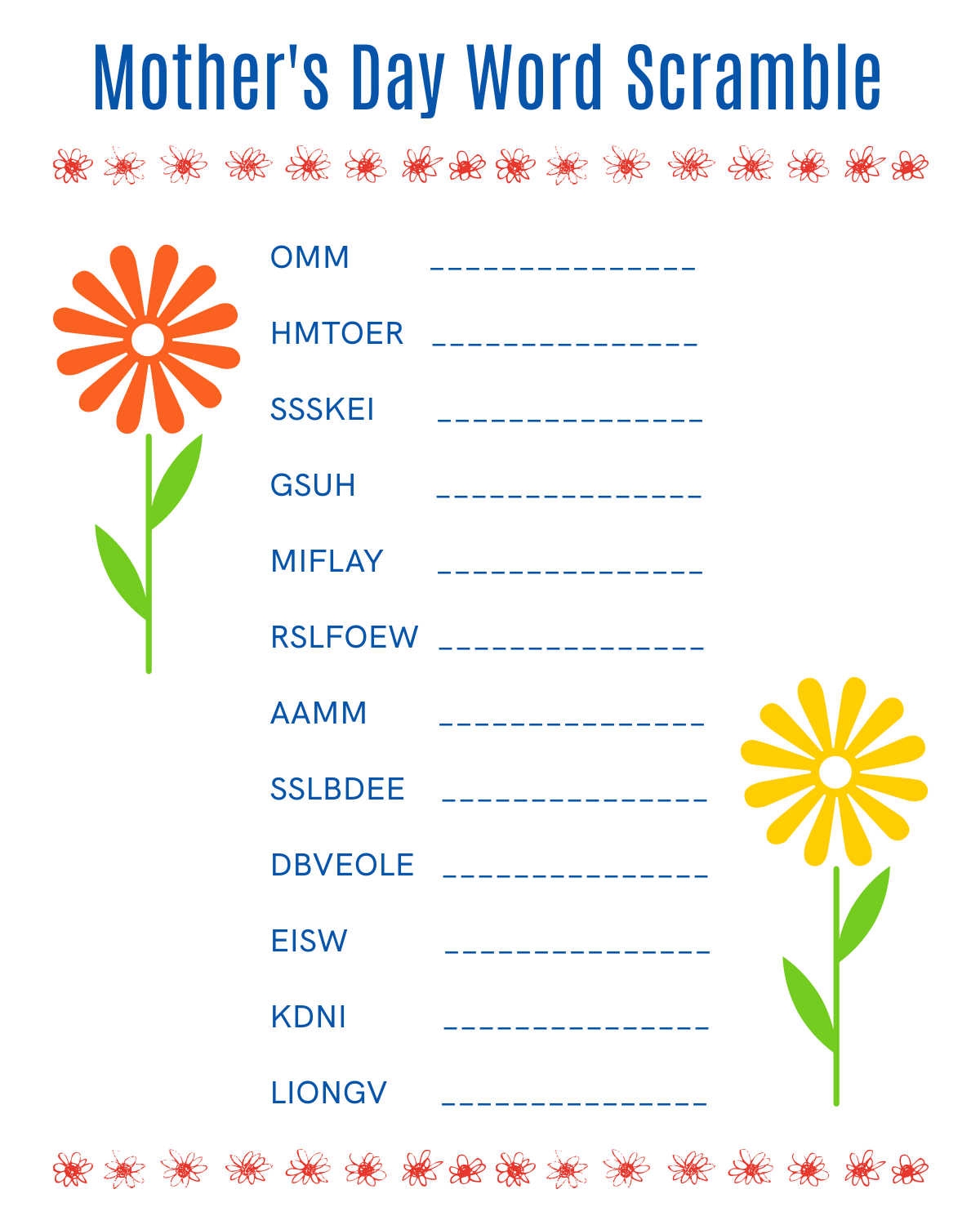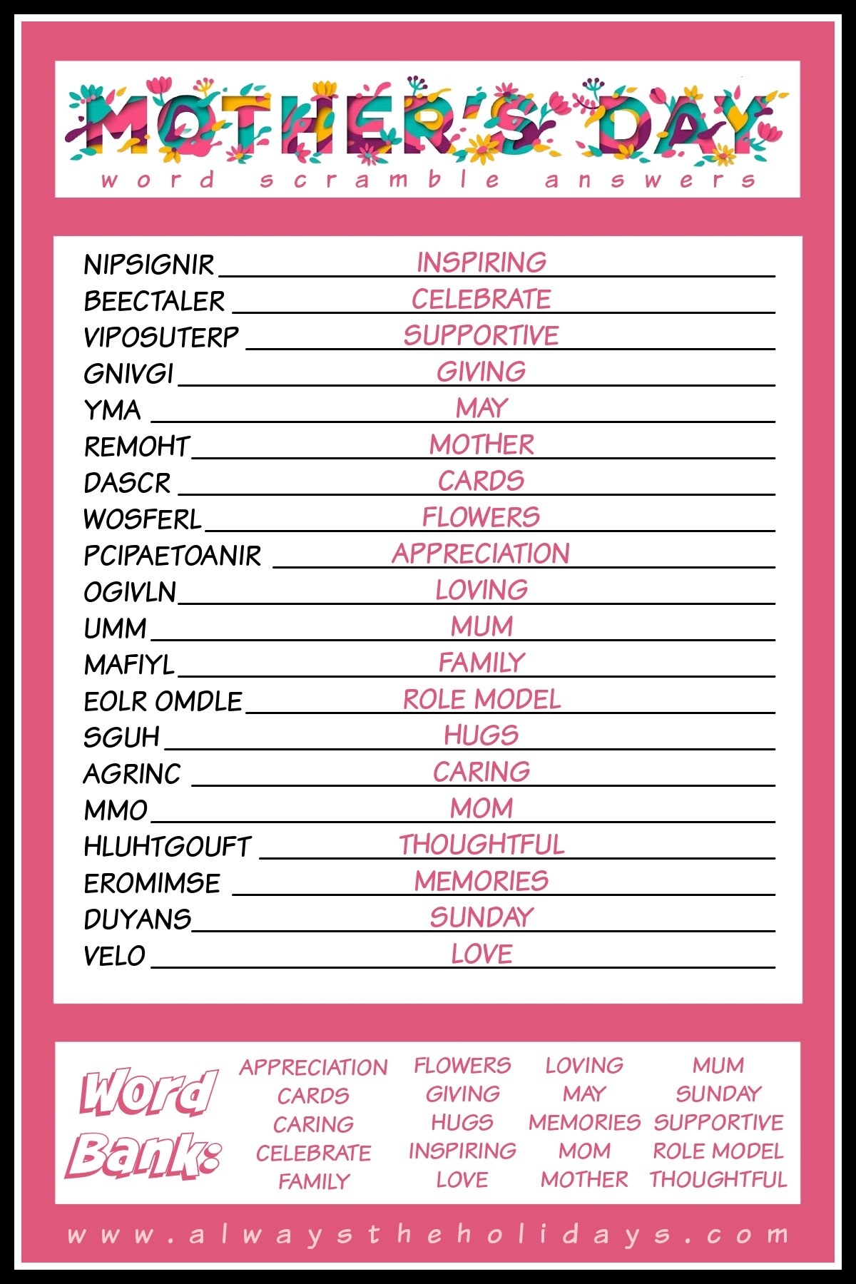 Mother s Day Word Scramble Game Mothers Day Trivia Games Word