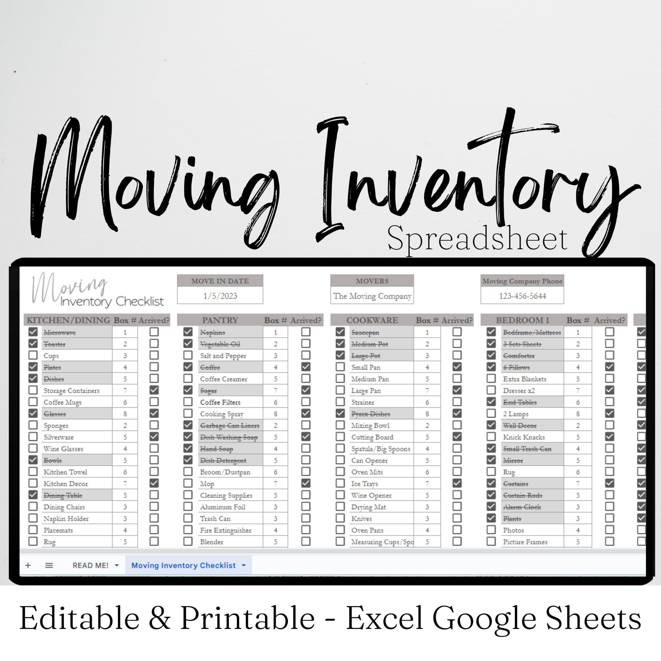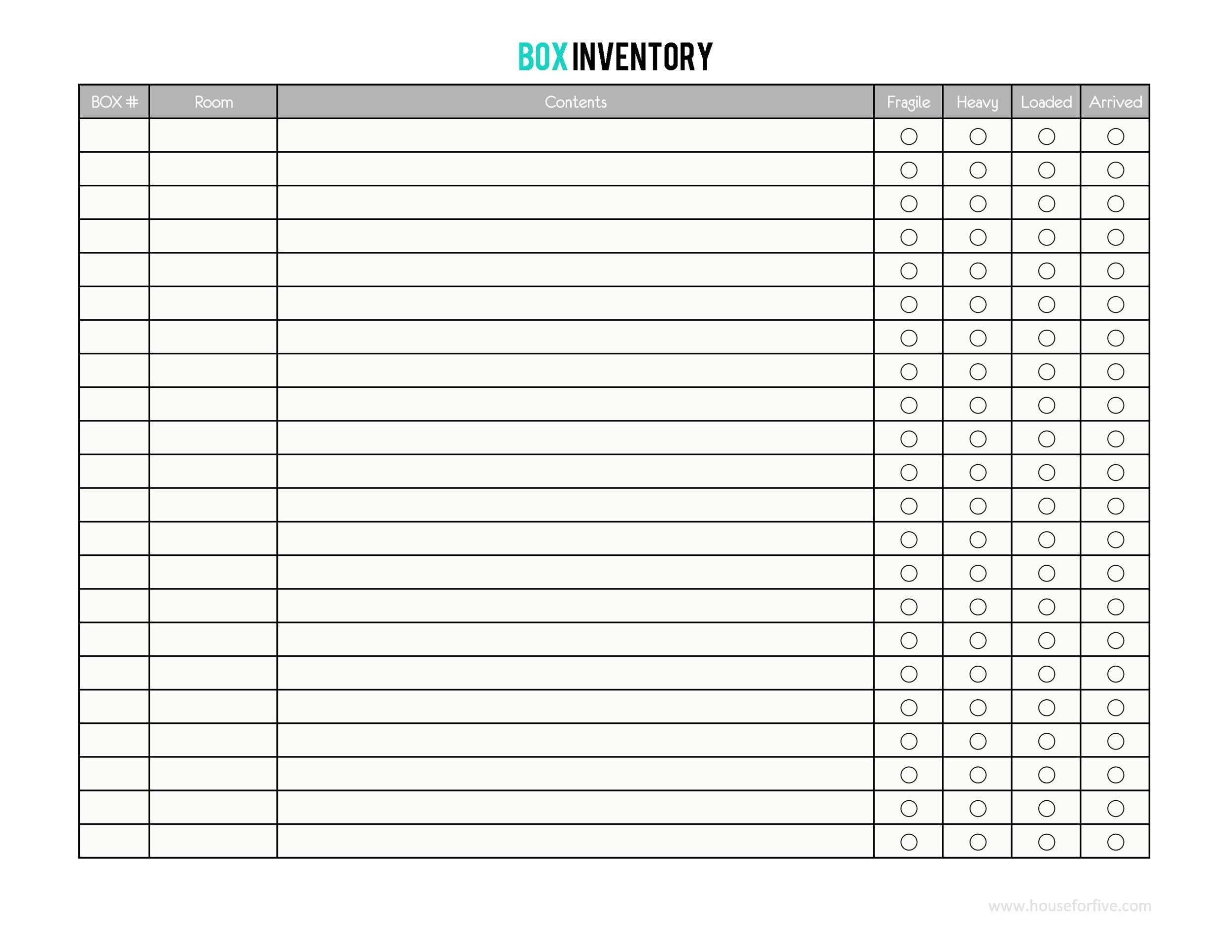 Moving Inventory List Printable