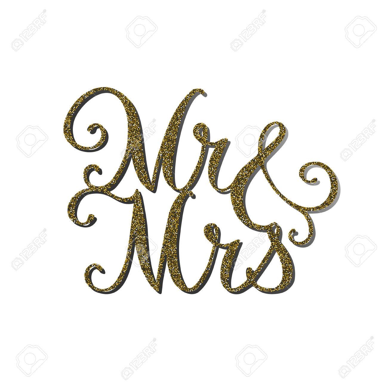 Vector Words Mr And Mrs With Gold Glitter Effect Handmade Unique Wedding Romantic Silhouette A Picture Is Suitable For Printing Engraving Laser Cutting Paper Wood Metal Stencil Manufacturing Royalty Free SVG Cliparts