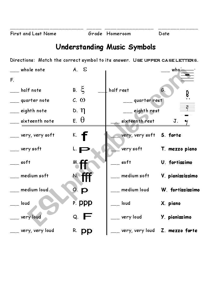 English Worksheets Music Understanding Music Symbols