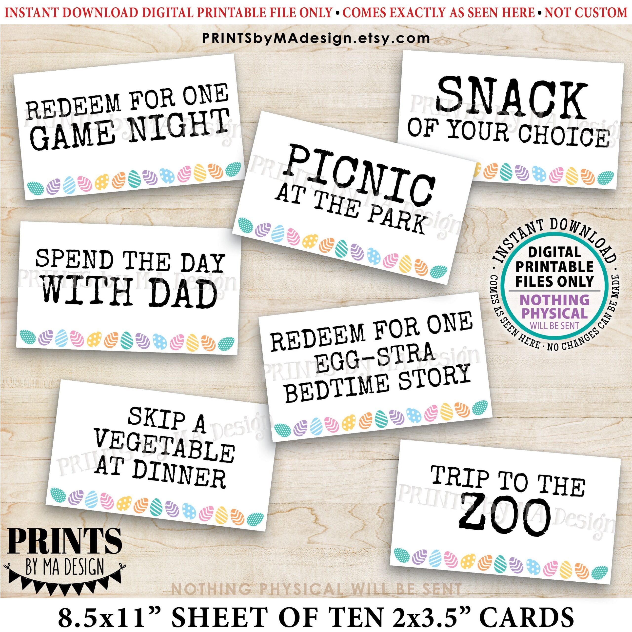 PRINTABLE Easter Egg Coupons Easter Egg Fillers Egg Hunt Candy Alternative 2×3 5