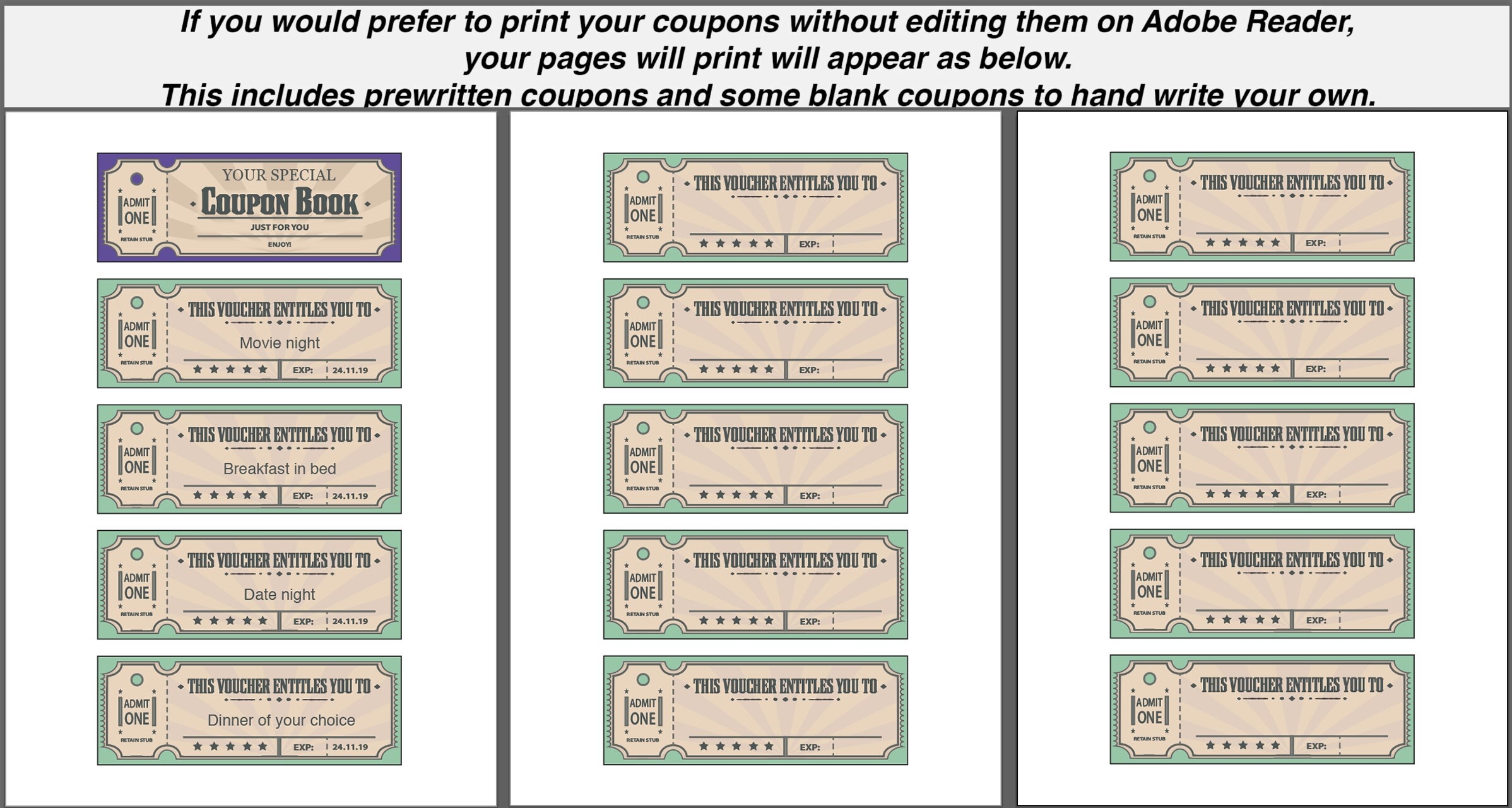 Printable Coupons retro Tickets editable PDF Instant Download Etsy