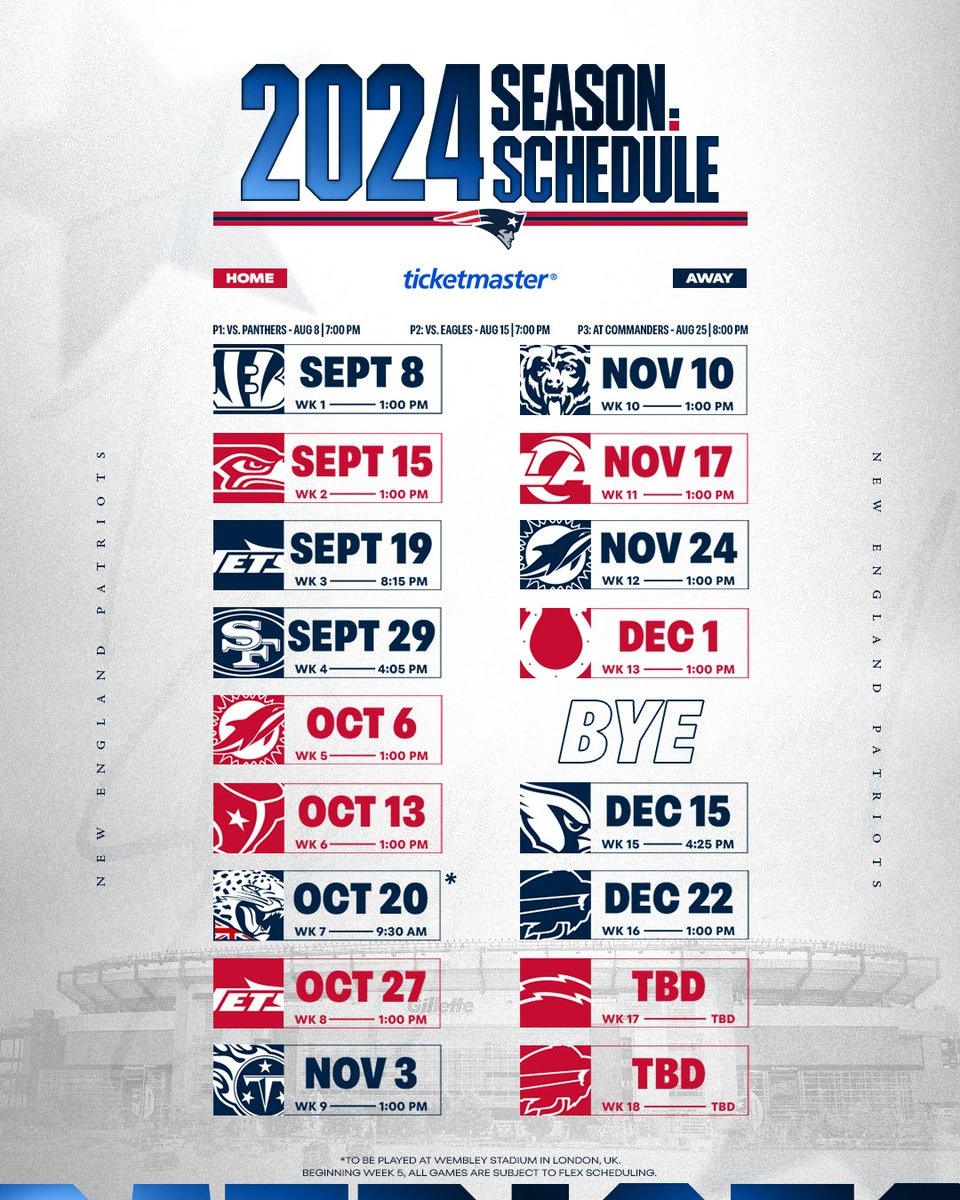 Complete 2023 2024 NE Patriots Schedule True Country 93 5