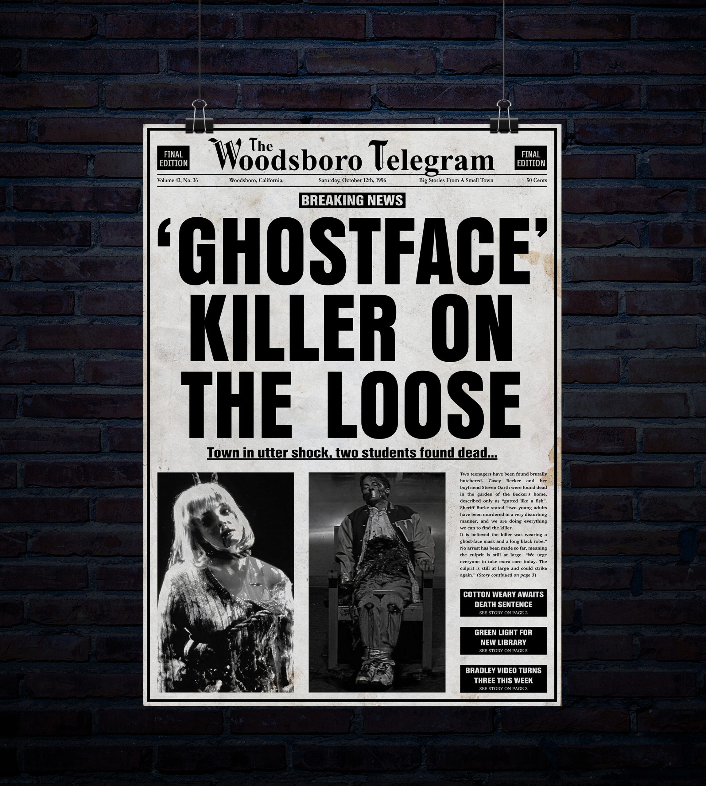 Ghostface Killer On The Loose Newspaper Article 20 Inch X 30 Inch 300dpi Poster Digital Download Etsy