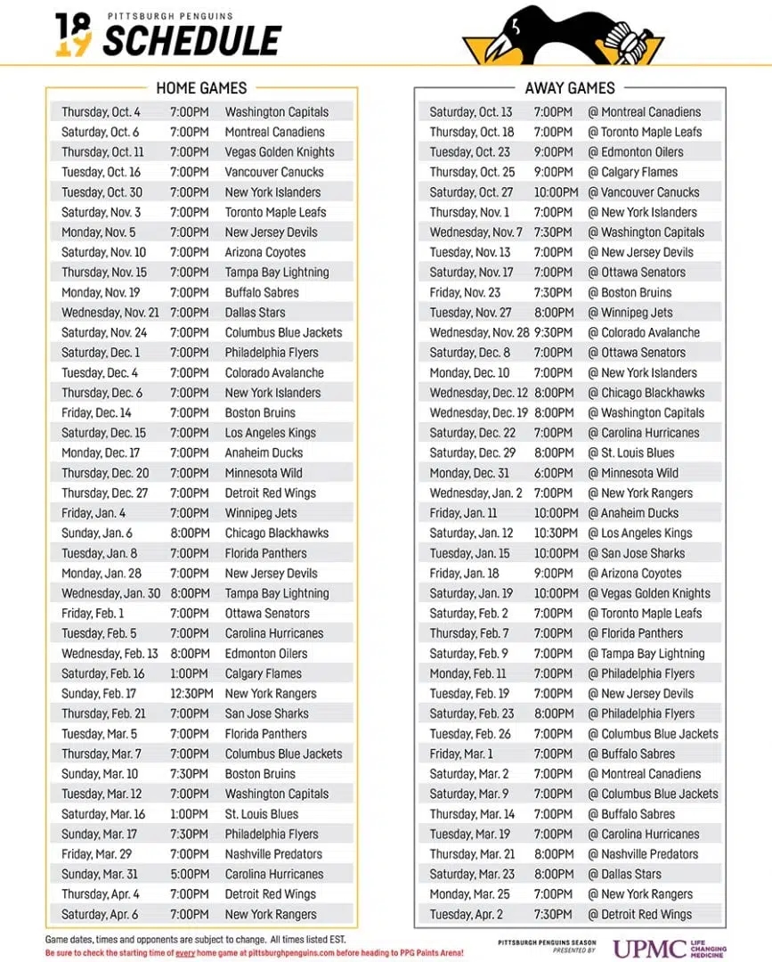 PENGUINS RELEASE 2018 2019 SCHEDULE WCCS AM1160 U0026 101 1FM