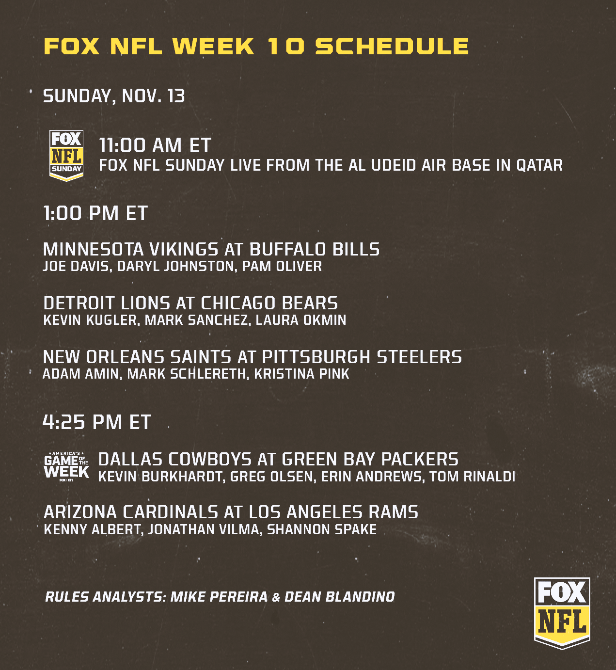 So grab your jersey, prepare your snacks, and get ready for an action-packed week of football. The NFL Week 10 schedule is here to entertain, so don’t miss out on all the excitement. Let the games begin!