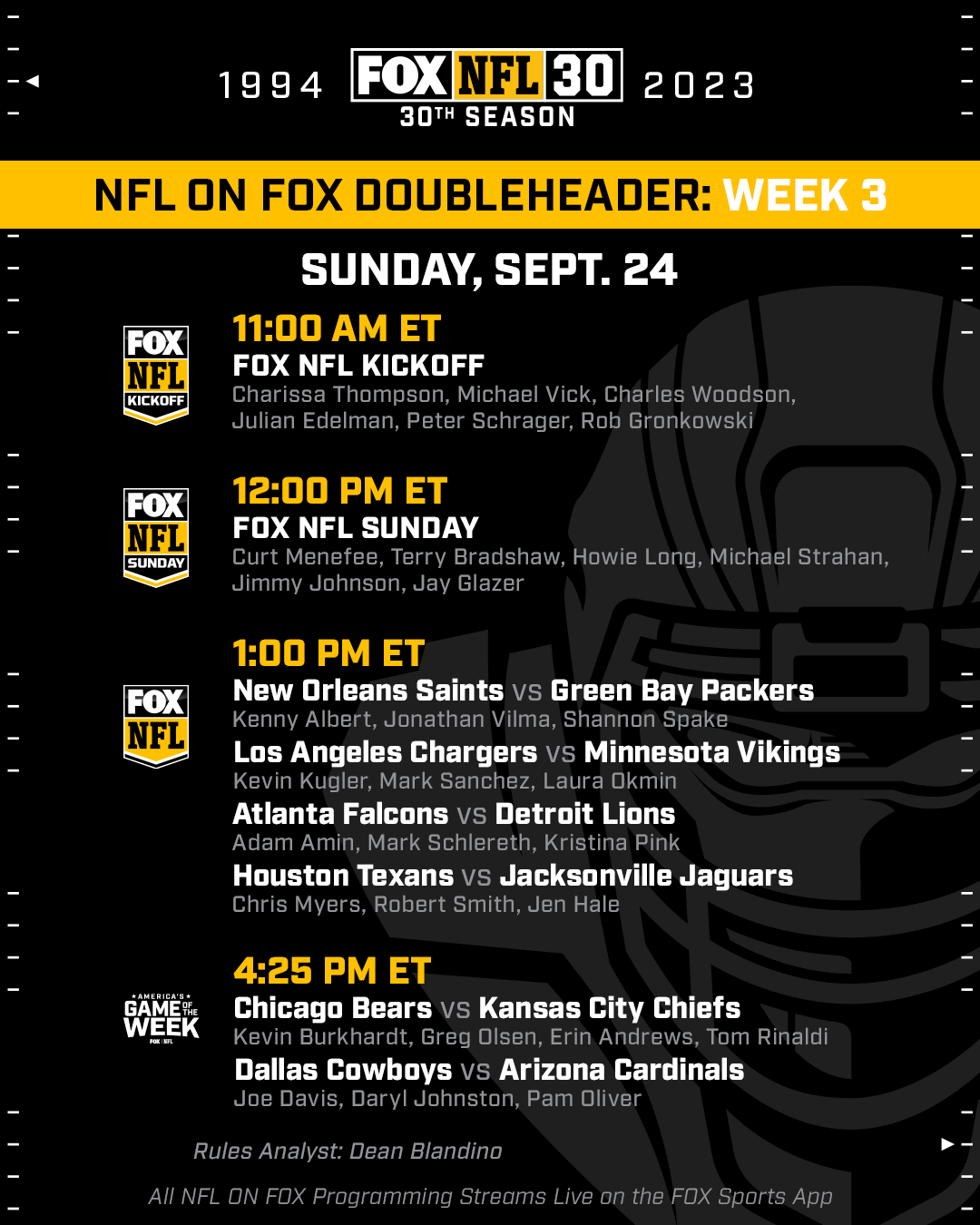 NFL On FOX Week 3 Schedule And Regionalization Fox Sports Press Pass