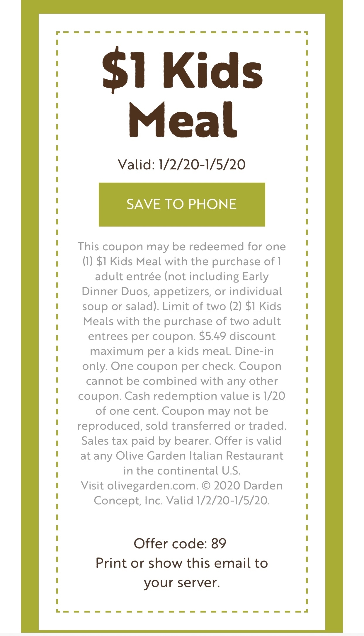 Olive Garden Coupon 20 OFF The Entire Table 10 Favorites