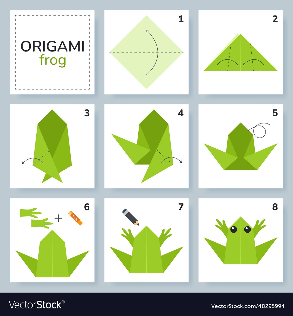 Origami Tutorial For Kids Cute Frog Royalty Free Vector