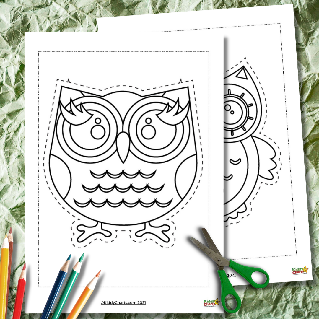 Owl Coloring Pages Cut And Colour Owls KiddyCharts Shop