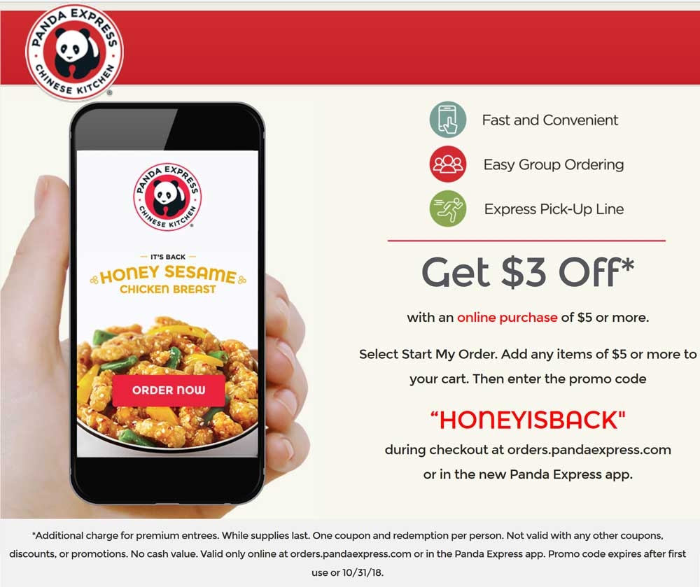 3 Off 5 Online At Panda Express Restaurants Via Promo Code HONEYISBACK Panda Express August 2025 Coupons Promo Codes U0026 Deals