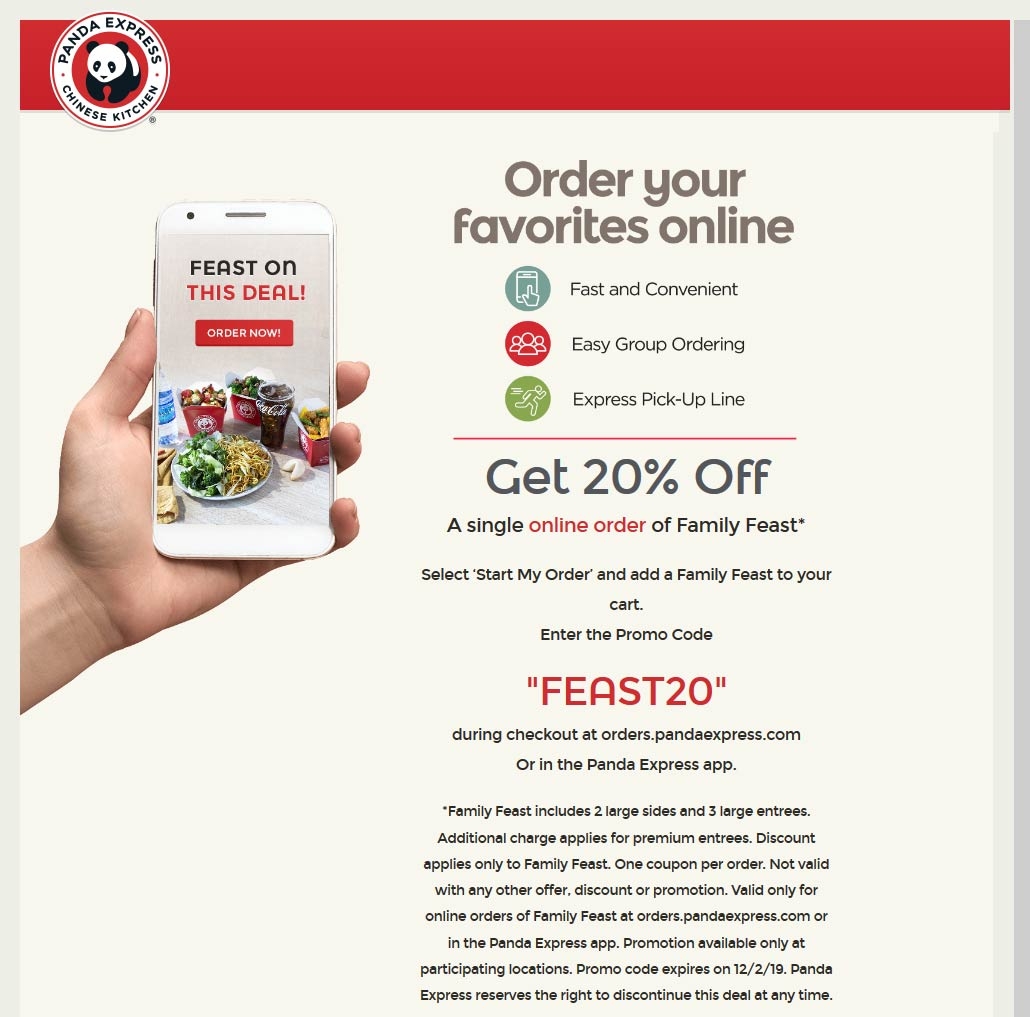 20 Off Family Feast Online At Panda Express Restaurants Via Promo Code FEAST20 Panda Express August 2025 Coupons Promo Codes U0026 Deals