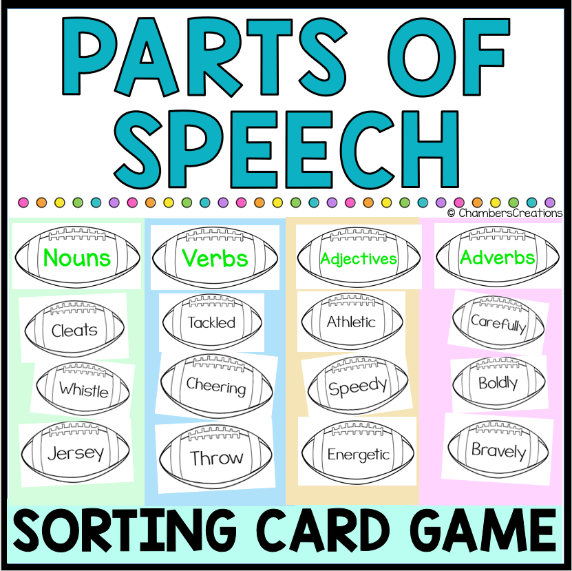 Parts Of Speech Football Themed Card Sorting Game ELA Center Nouns