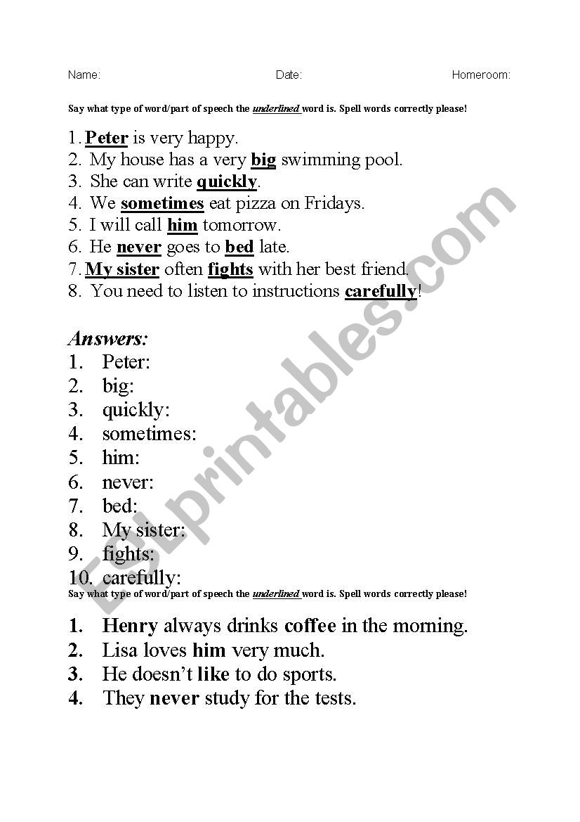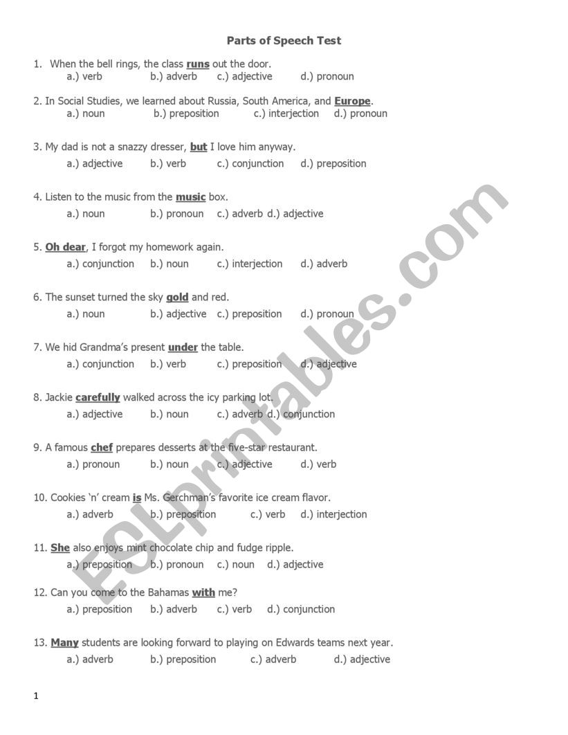 Whether you prefer to study on your own or with a group, a parts of speech test printable can be a versatile tool that suits different learning styles. You can use these printables as a warm-up activity, homework assignment, or even as a quick refresher before an exam.
