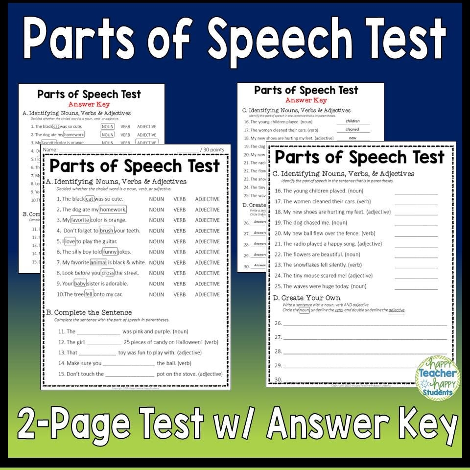 Parts of Speech Test Printable: A Useful Resource for Language Learners