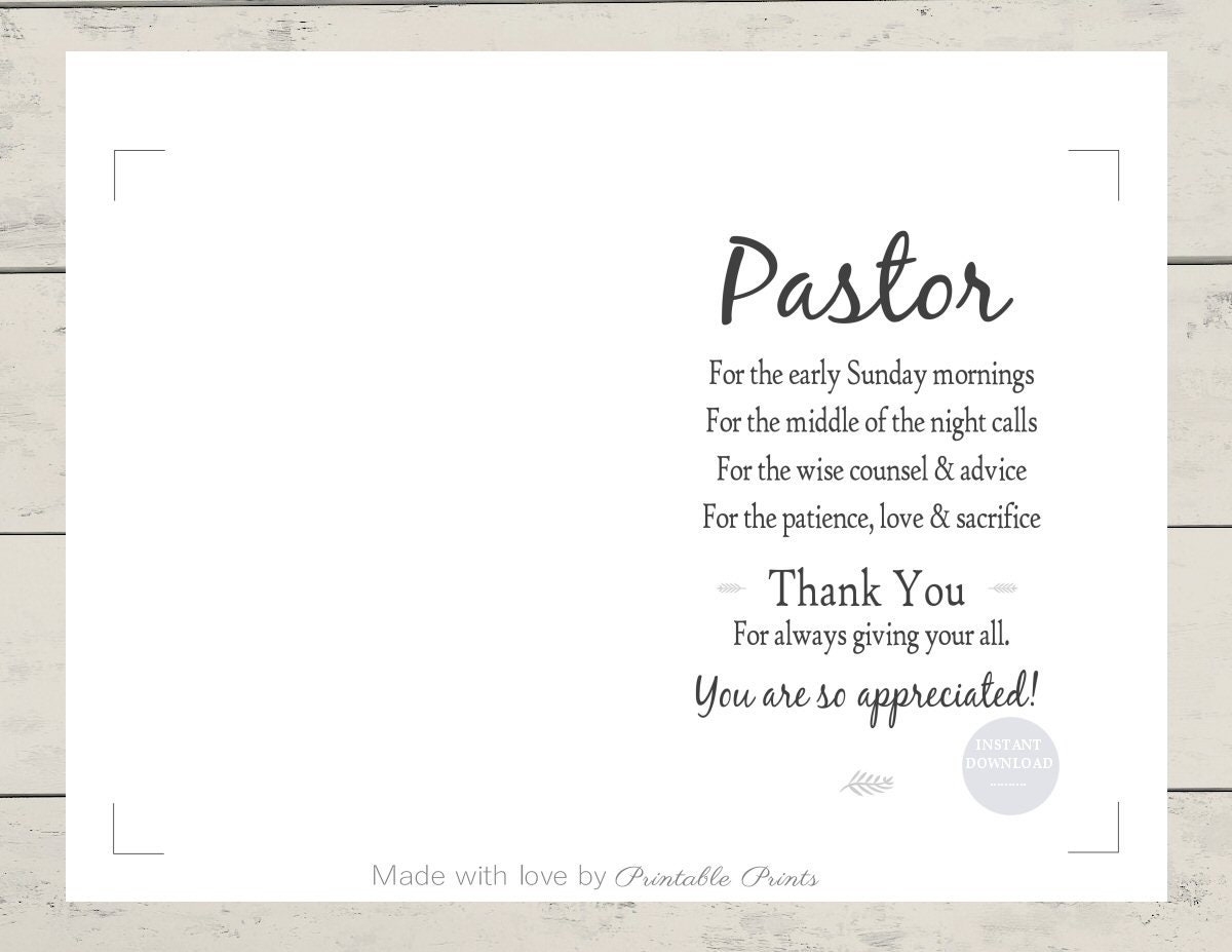 Printable PASTOR APPRECIATION Card 5×7 CARD Gift For Pastor Thank You Instant Download White Card Template Jpeg File Quick Etsy