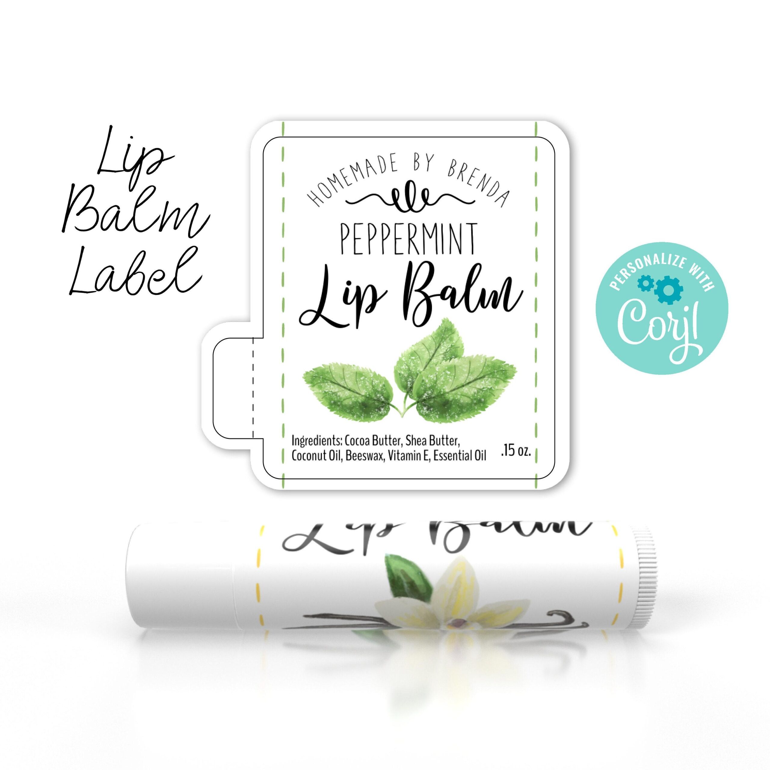 Lip Balm Label Template Lip Gloss Label Vanilla Peppermint Strawberry Lemon Design Edit Download Print On Stickers Chapstick Label Etsy