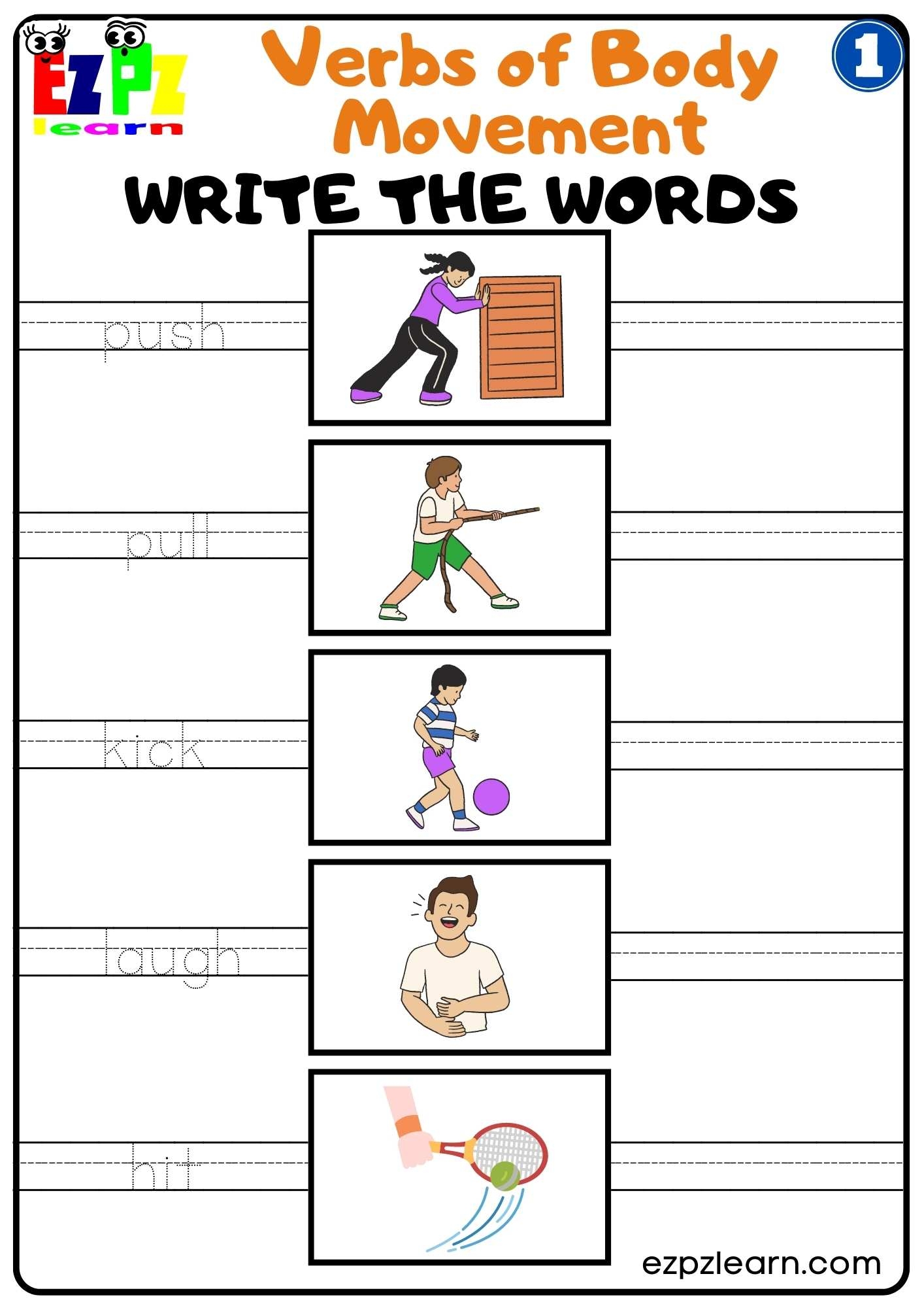 Group 1 Verbs Of Body Movement Write The Words Free PDF Download For Parents And ESL Teachers Ezpzlearn