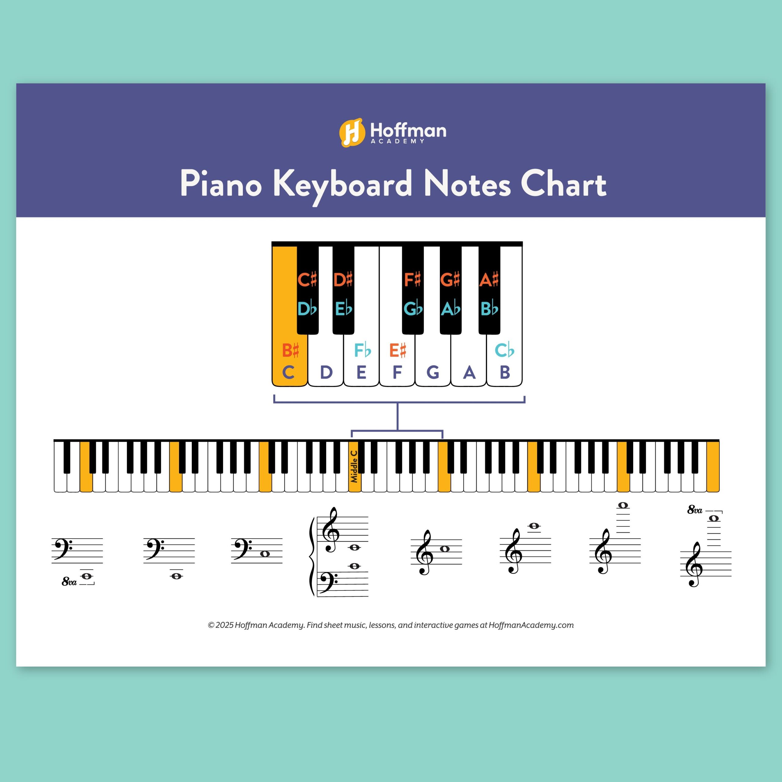 Piano Keys And Notes Poster Chart Educational Piano Downloadable