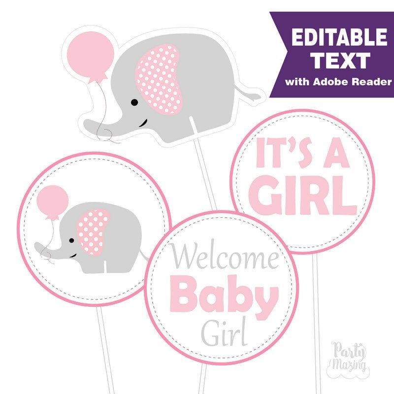 Elephants In Pink Free Printable Cake Toppers Oh My Baby