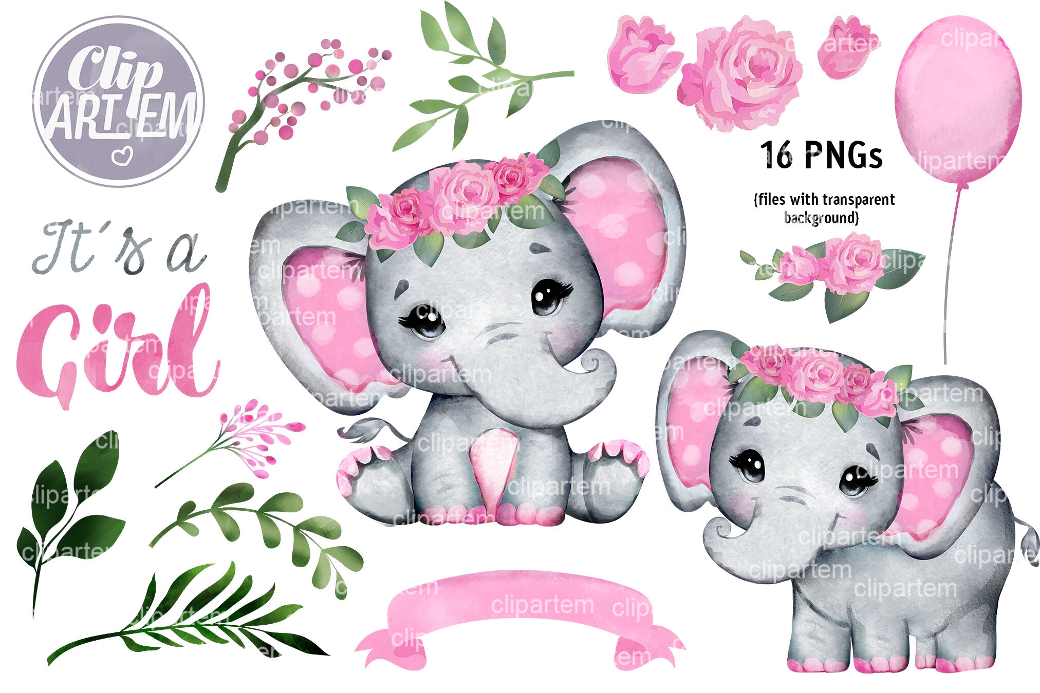 Pink Floral Girl Elephant Baby Shower 16 PNG Images Set By ClipArtem TheHungryJPEG