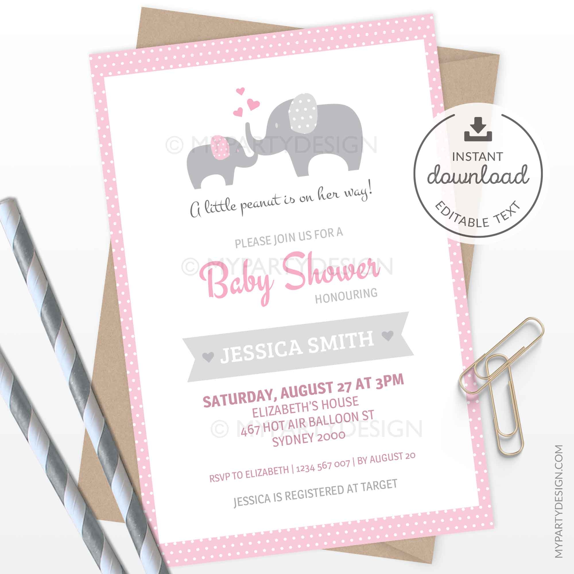 Pink Elephant Baby Shower Invitation Printable Invite My Party Design