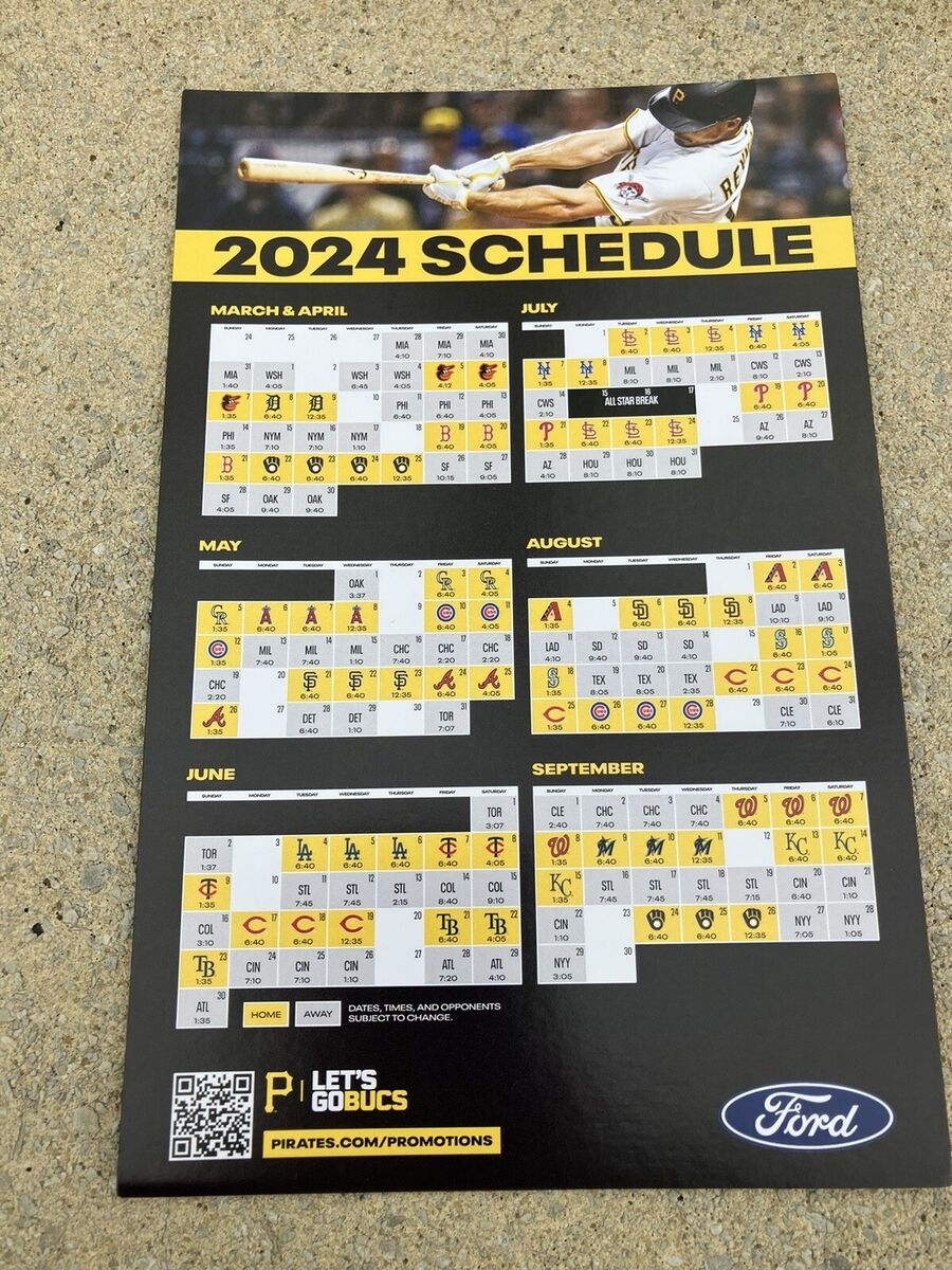 Pittsburgh Pirates 2024 Magnetic Schedule Opening Day SGA 4 5 24