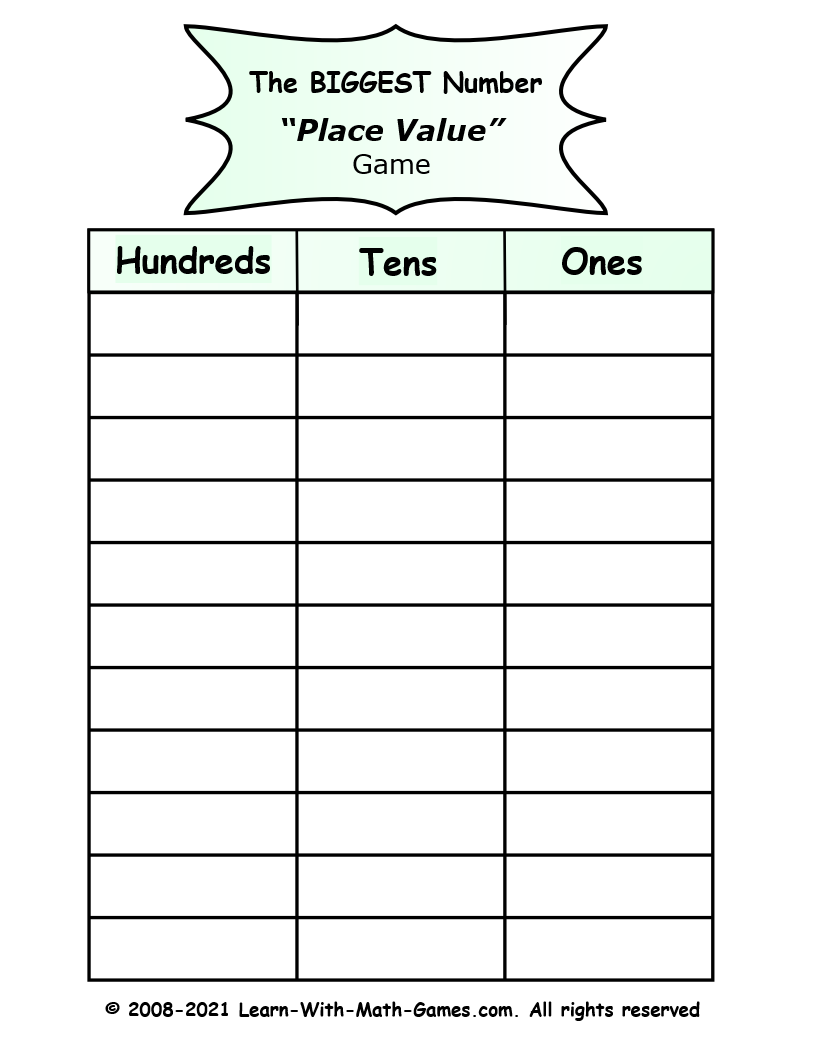 Place Value Games For 2nd Grade Printable