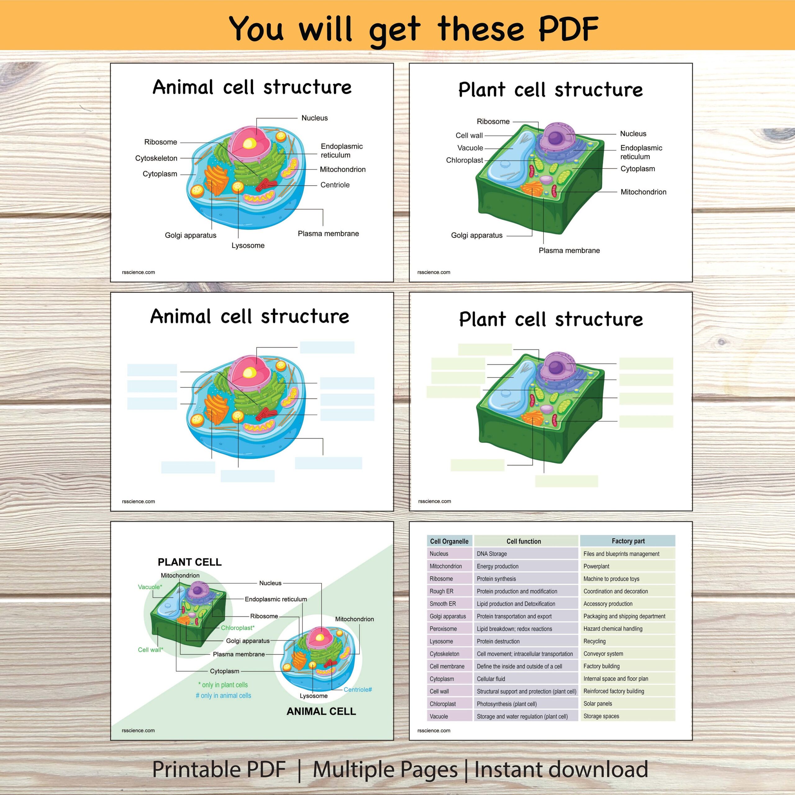 Animal Plant Cell Structure Labeling Sheet Comparison Diagram Cell Organelle Science Biology Function Elementary Printable Homeschool STEM Etsy