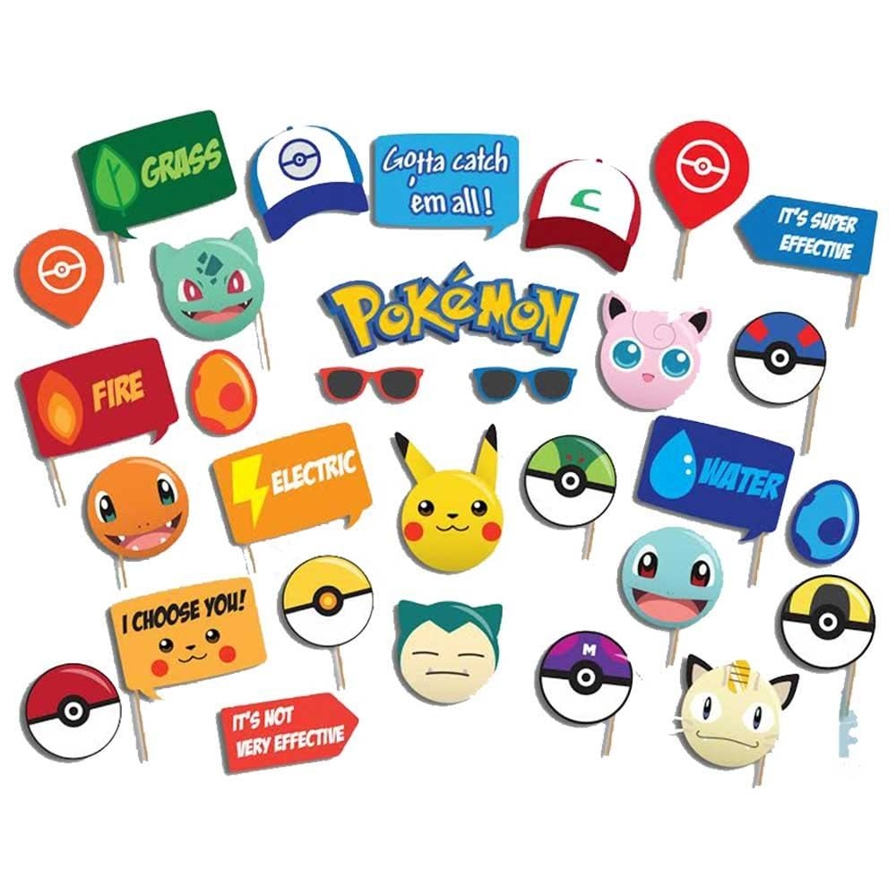 Party Propz Pokemon Photo Booth Props 29 Pieces For Pokemon Party Supplies Amazon in Toys U0026 Games
