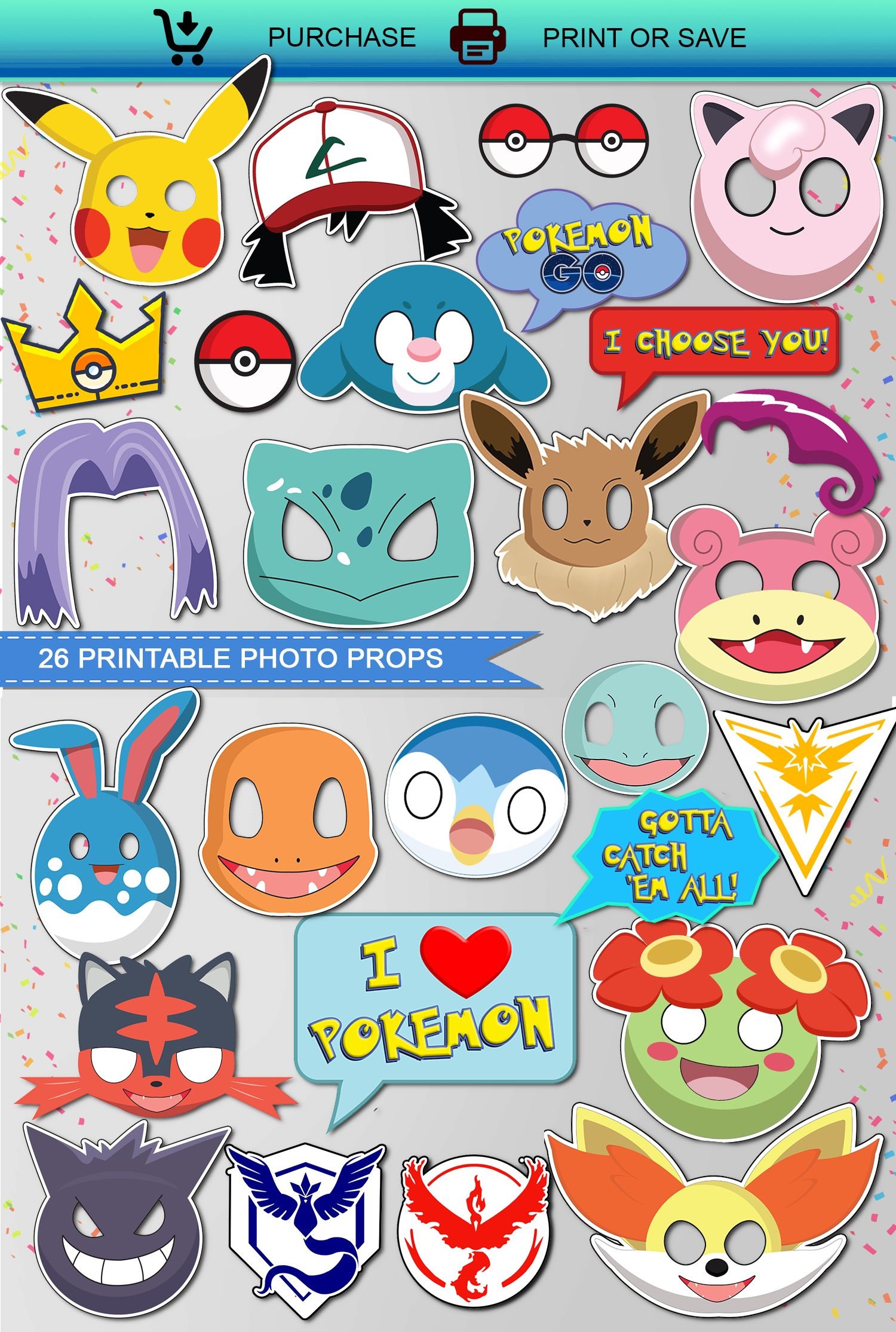 Pokemon Printable Photo Booth Props Pokemon Instant Download Pokemon Clipart Pokemon Party