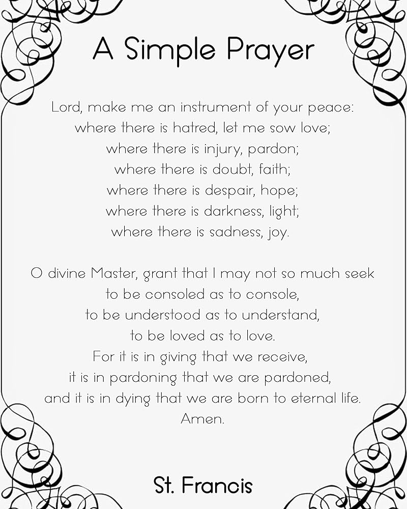 Amazon St Francis Prayer A Simple Prayer For Peace Inspirational Poster Print Picture Or Framed Wall Art Decor Famous Devotional Prayers Collection Holidays 8×10 Unframed Photo Posters U0026 Prints