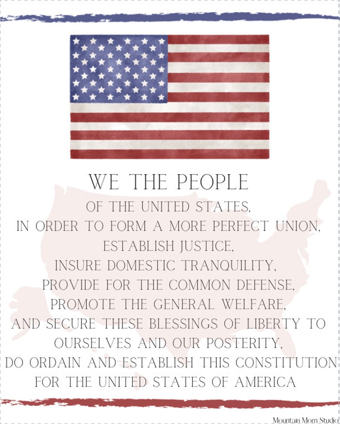 Preamble To The Constitution With American Flag Watercolor Inspired Rustic USA American Homeschool Decor Poster DIGITAL DOWNLOAD Etsy