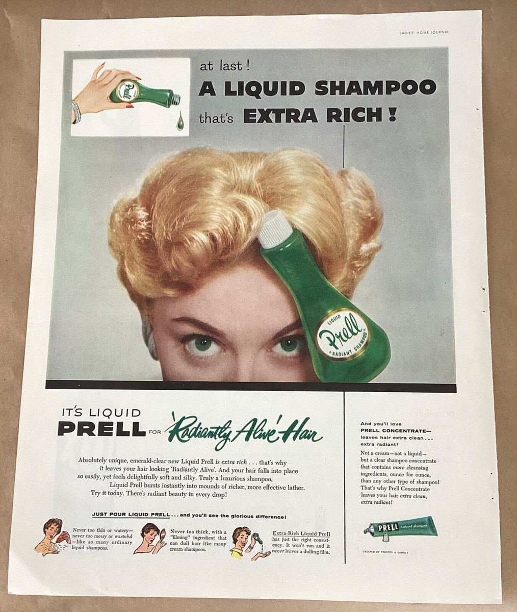 Prell Shampoo Print Ad 1956 Vintage 1950s Retro Home Decor Art Model Bottle