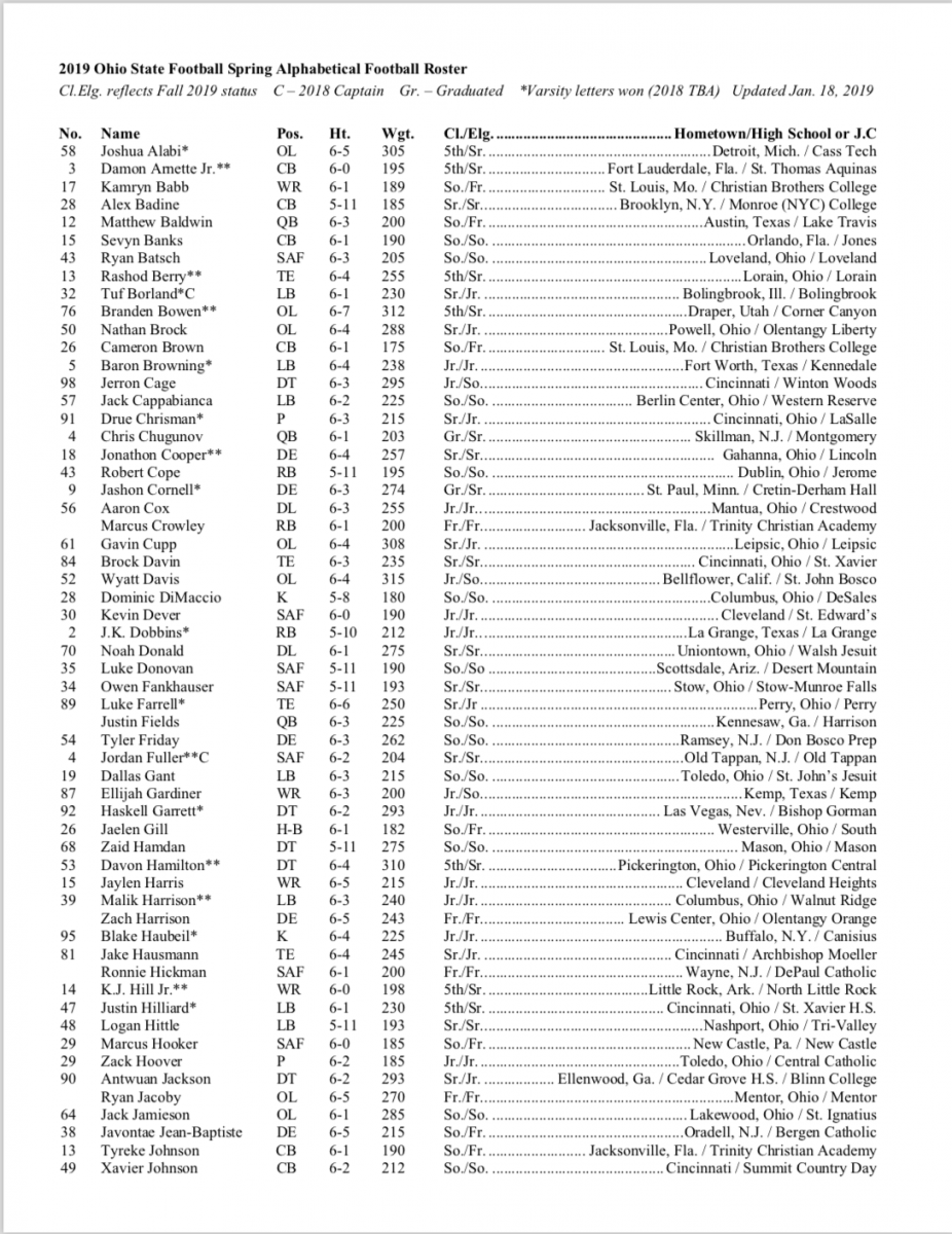 Ohio State Releases 2019 Spring Football Roster Including Justin