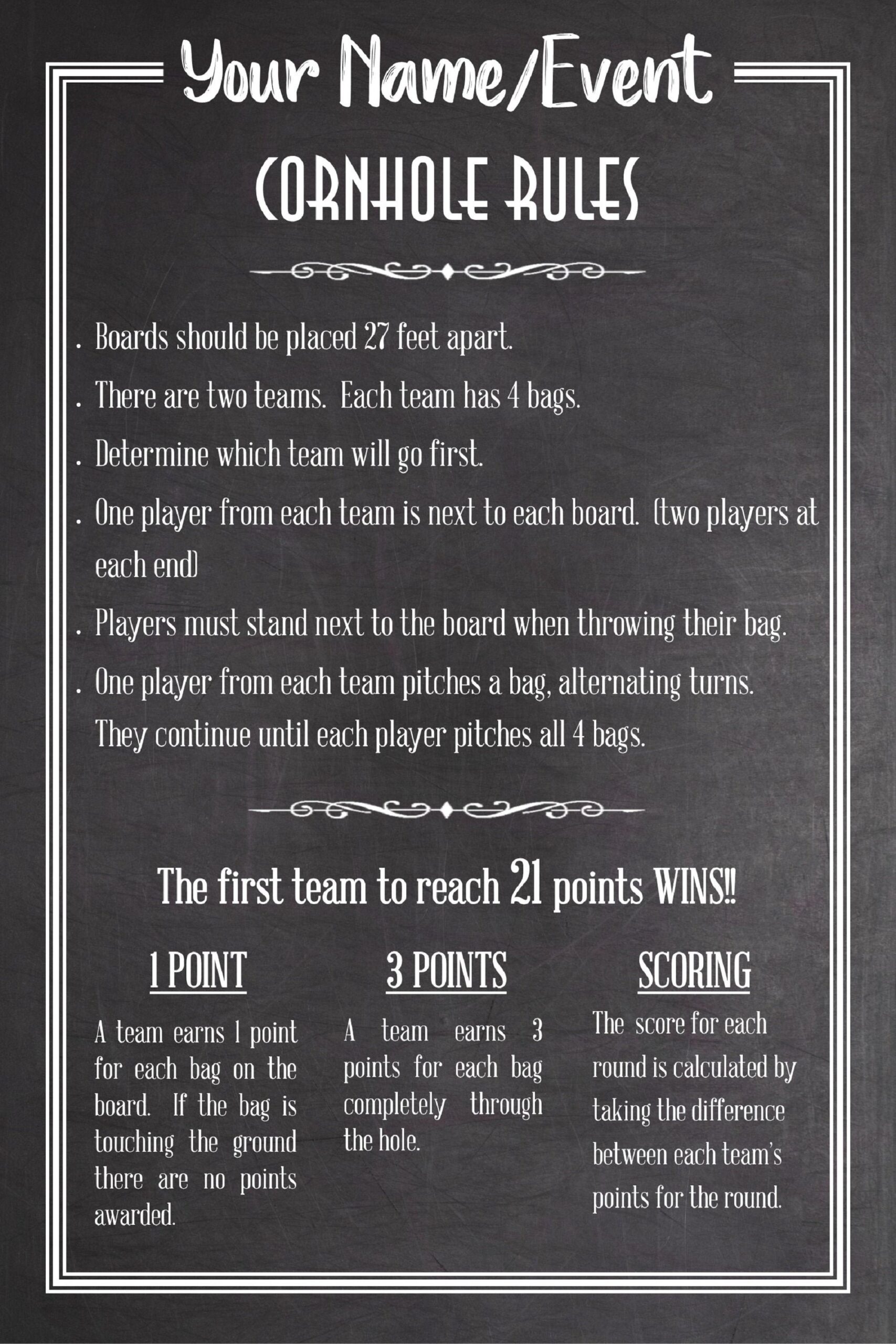 Custom Cornhole Sign Rules Corn Hole Yard Game Sign Outdoor Party Wedding Party Lawn Backyard Bag Toss Events personalized With Your Name Etsy