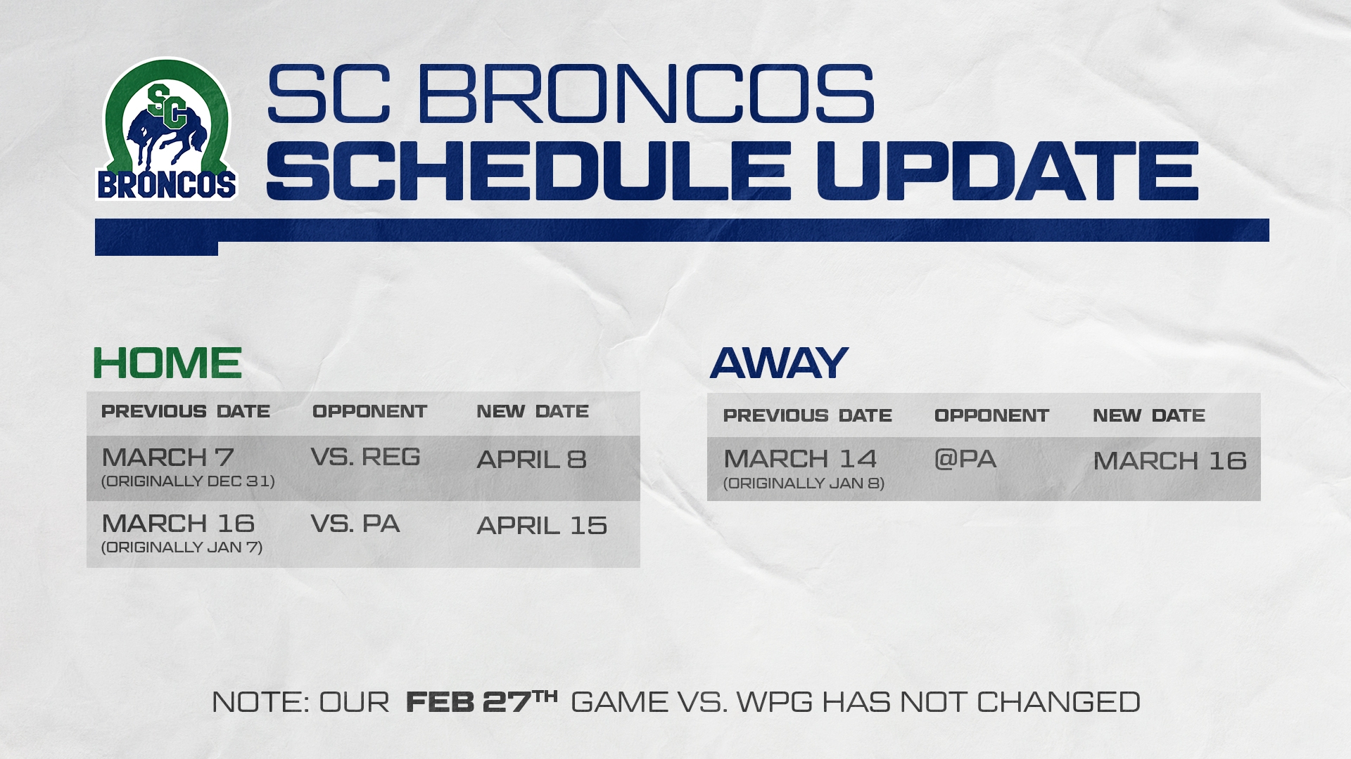WHL Extends Regular Season By Two Weeks Three Broncos Games Rescheduled Swift Current Broncos