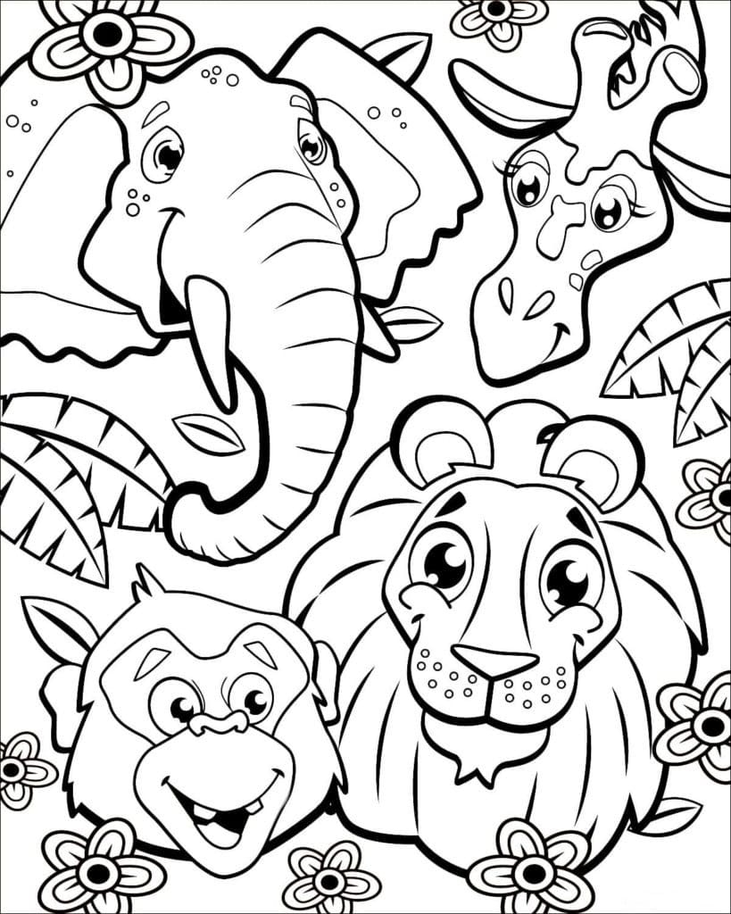 Jungle Animals Coloring Pages Free Printable Pages Cute Animals Coloring Pages