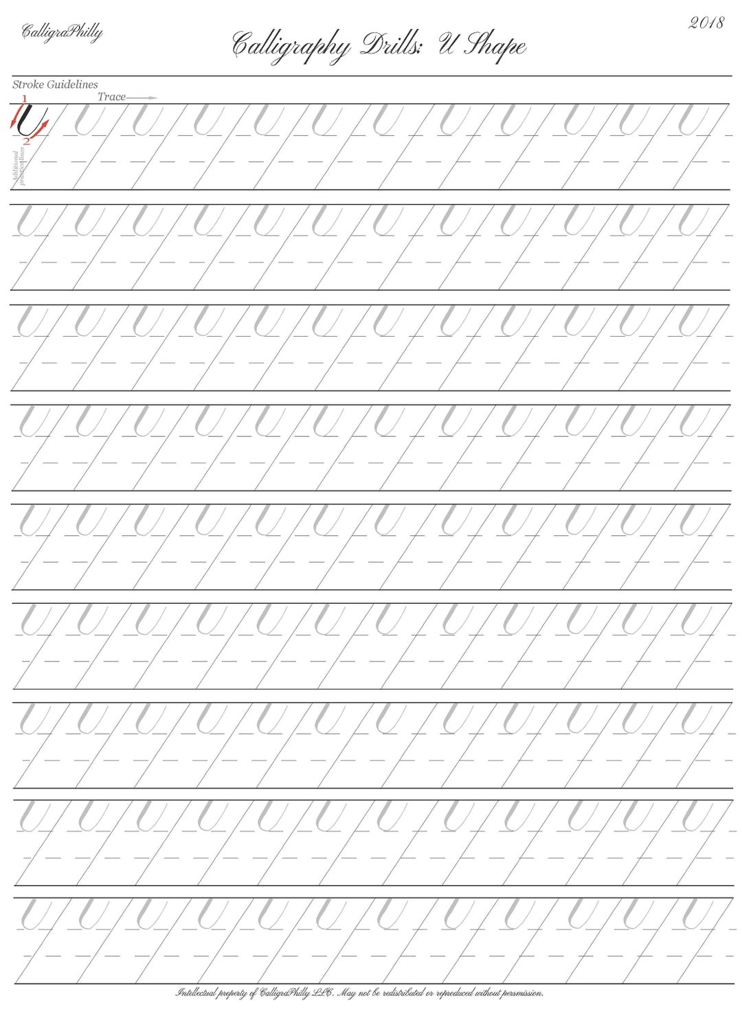 Beginner Level 1 Copperplate Calligraphy Practice Drills Full Sheet Of U Shape Practice Digital Download PDF Etsy UK