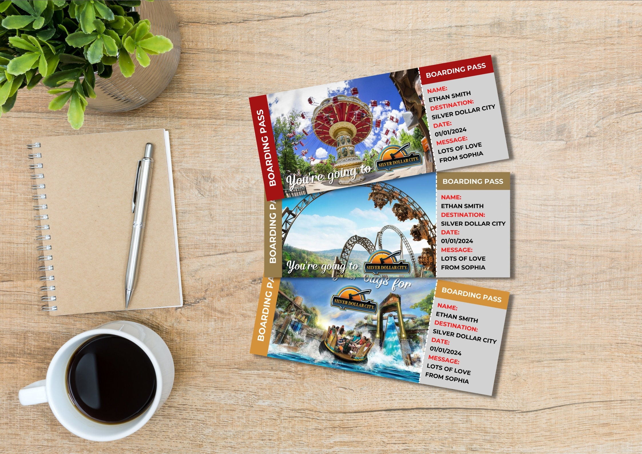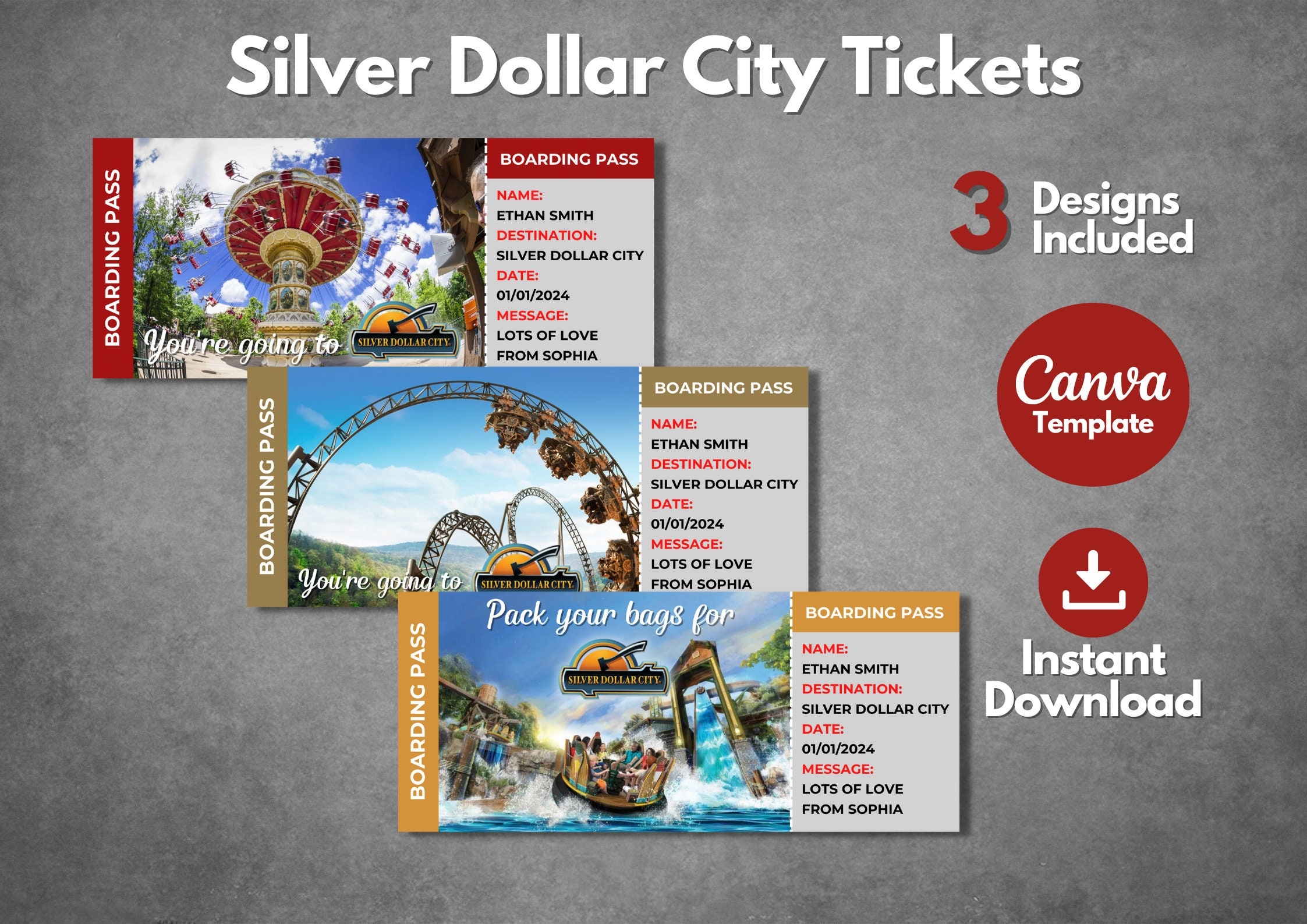 Editable Silver Dollar City Surprise Ticket Template Printable Silver Dollar City Boarding Pass Template Silver Dollar City Vacation Trip Etsy