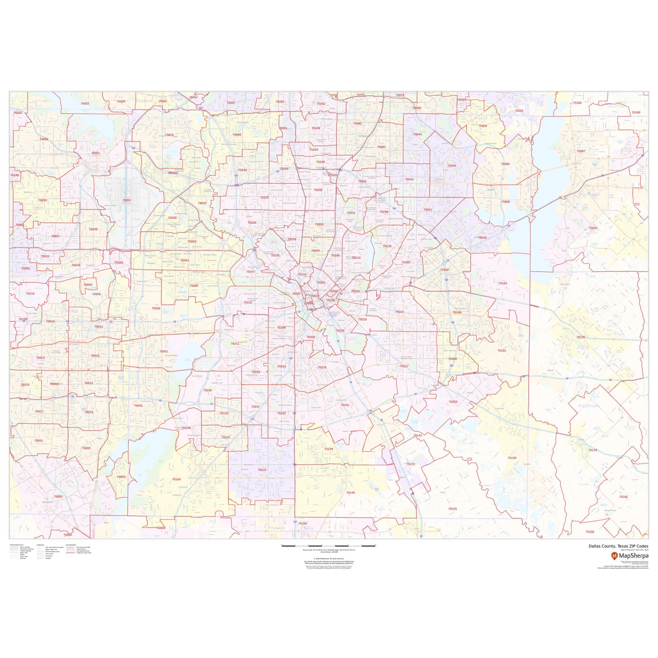 Dallas County Texas Zip Codes By Map Sherpa The Map Shop
