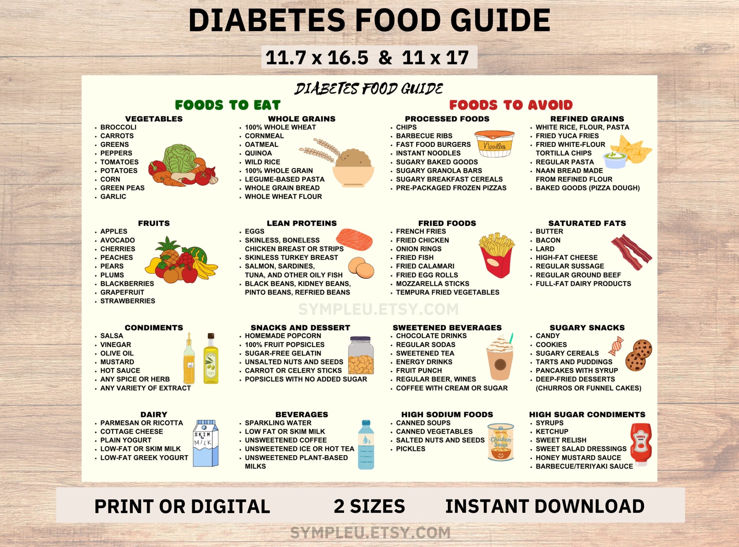 Diabetes Food List Poster Diabetic Diet Guide PDF U0026 PNG Etsy