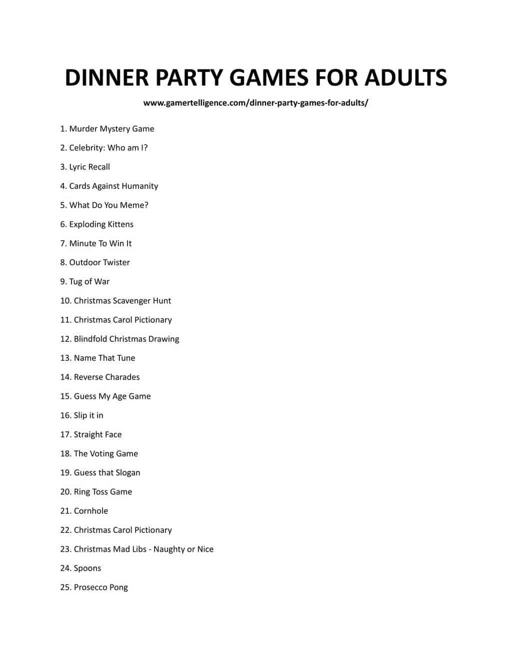 Whether you’re hosting a small get-together or a big celebration, printable dinner party games are a versatile option that can be customized to suit any theme or group of guests. From icebreakers to trivia games, there’s something for everyone to enjoy.